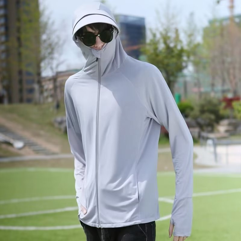 Белая солнцезащитная одежда F02; Темно-серая солнцезащитная одежда F02; Светло-серая солнцезащитная одежда F02; Светло-голубая солнцезащитная одежда F02