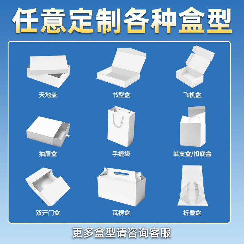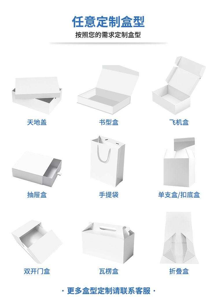 Двойная дверная коробка; Коробка с откидной крышкой; дисплейная коробка; ящик; Коробка с крышкой «небо и земля»; Оконная коробка; книжная коробка; авиационная коробка; портативная коробка; Нижний блок; веерообразная коробка; коробка конфет; трубчатая коробка; Подъемный ящик; Двойная вилка; Многоугольная коробка; подвесной ящик; Коробка с кубиком Рубика; Отрывная коробка; складная коробка; Многослойная складная коробка; Вращающийся выдвижной ящик; Двухслойный ящик с выдвижным механизмом; Коробка с обратным врезным замком; Цельная литая коробка; Вращающаяся коробка; По поводу других типов коробок обращайтесь в службу поддержки клиентов.