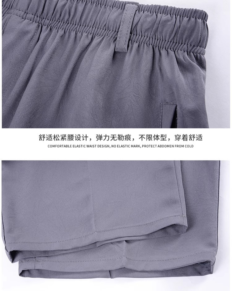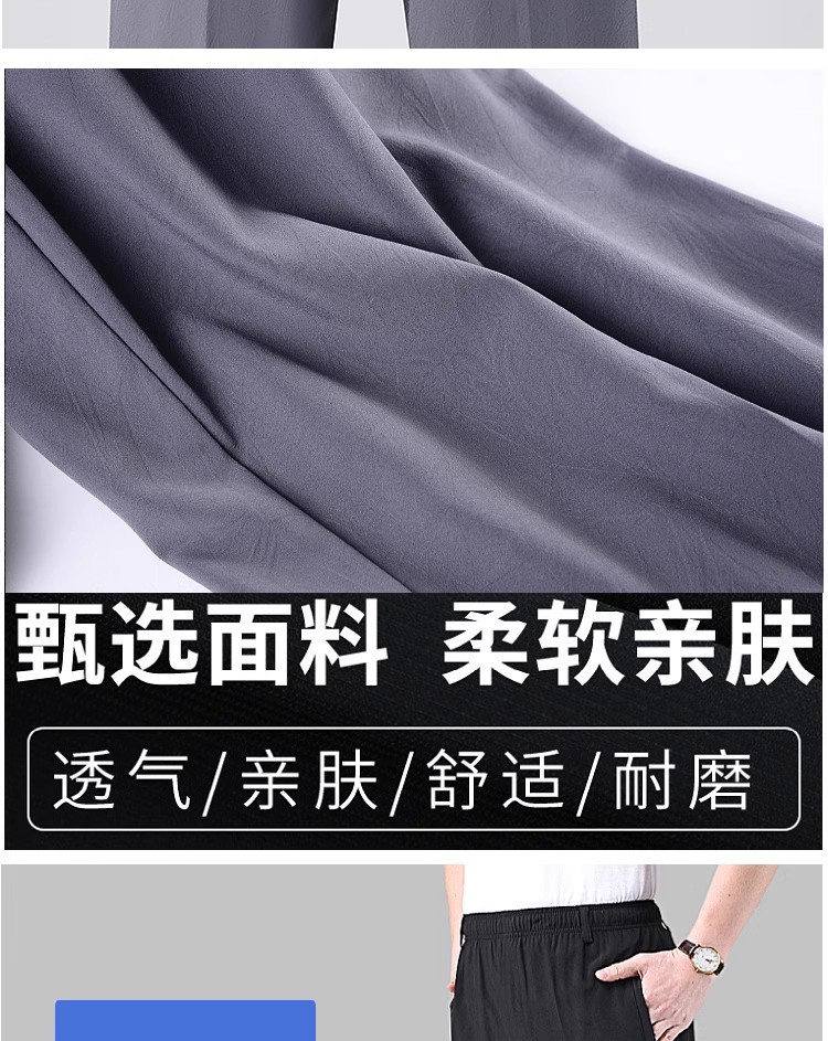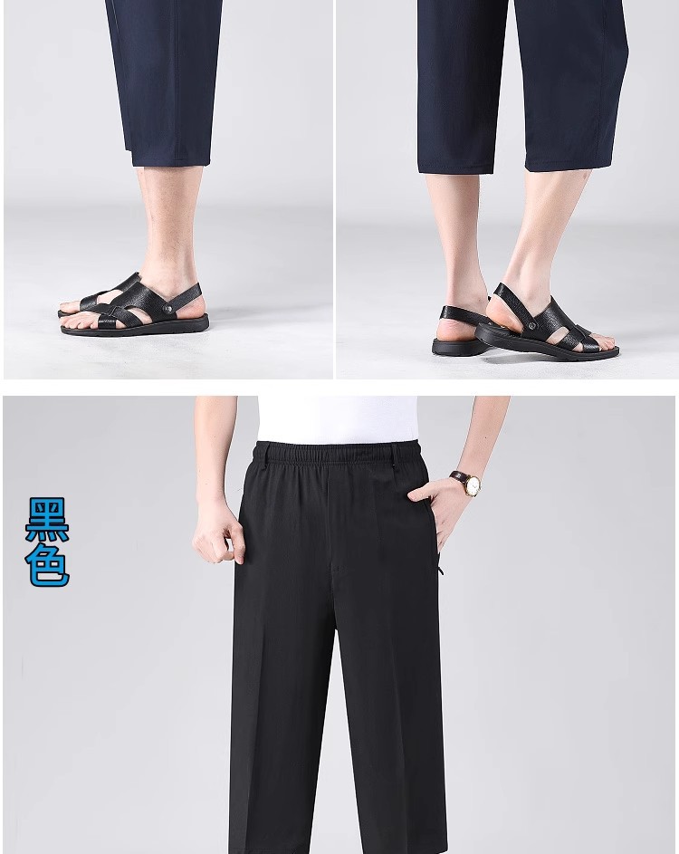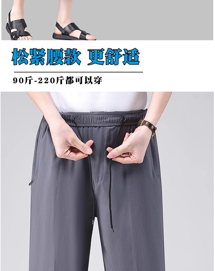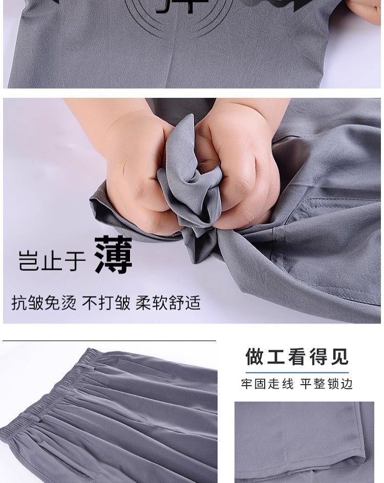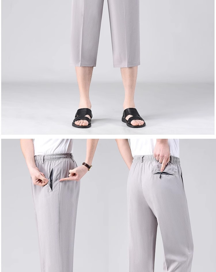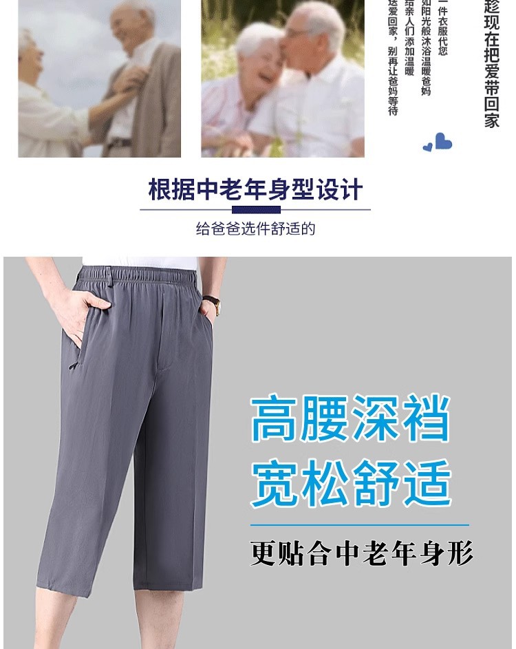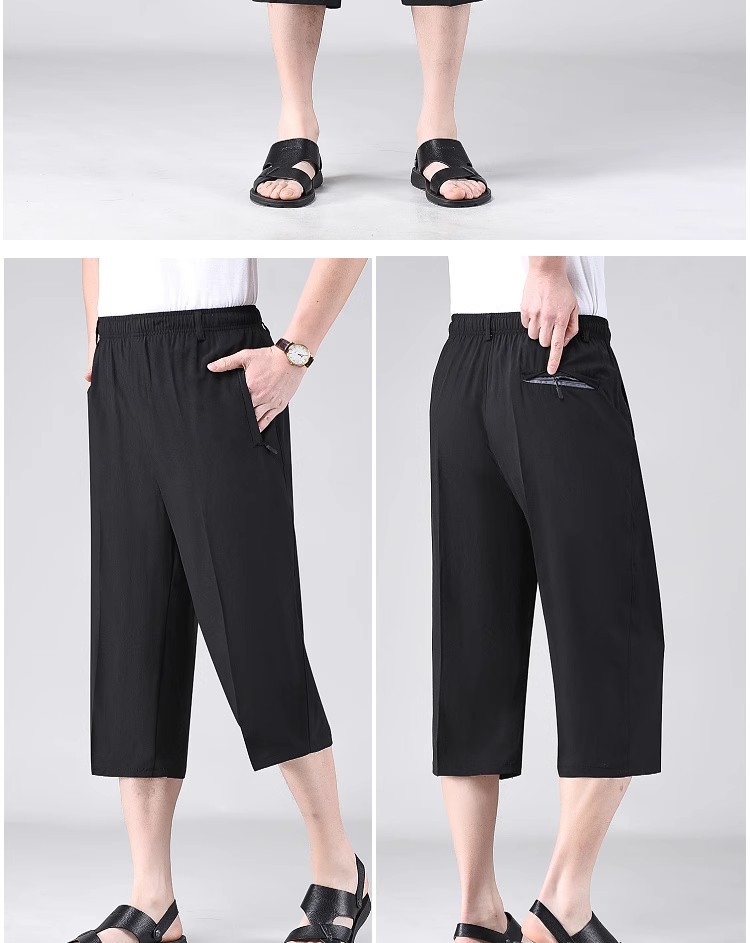Летние тонкие укороченные брюки для мужчин, шорты из ледяного шелка в стиле папы, миниатюрные повседневные брюки, быстросохнущие брюки средней длины для среднего и пожилого возраста.