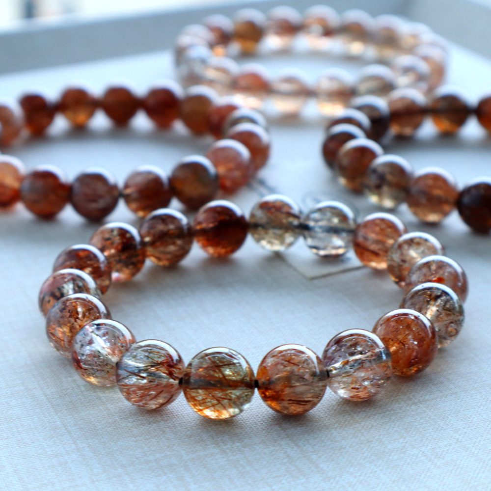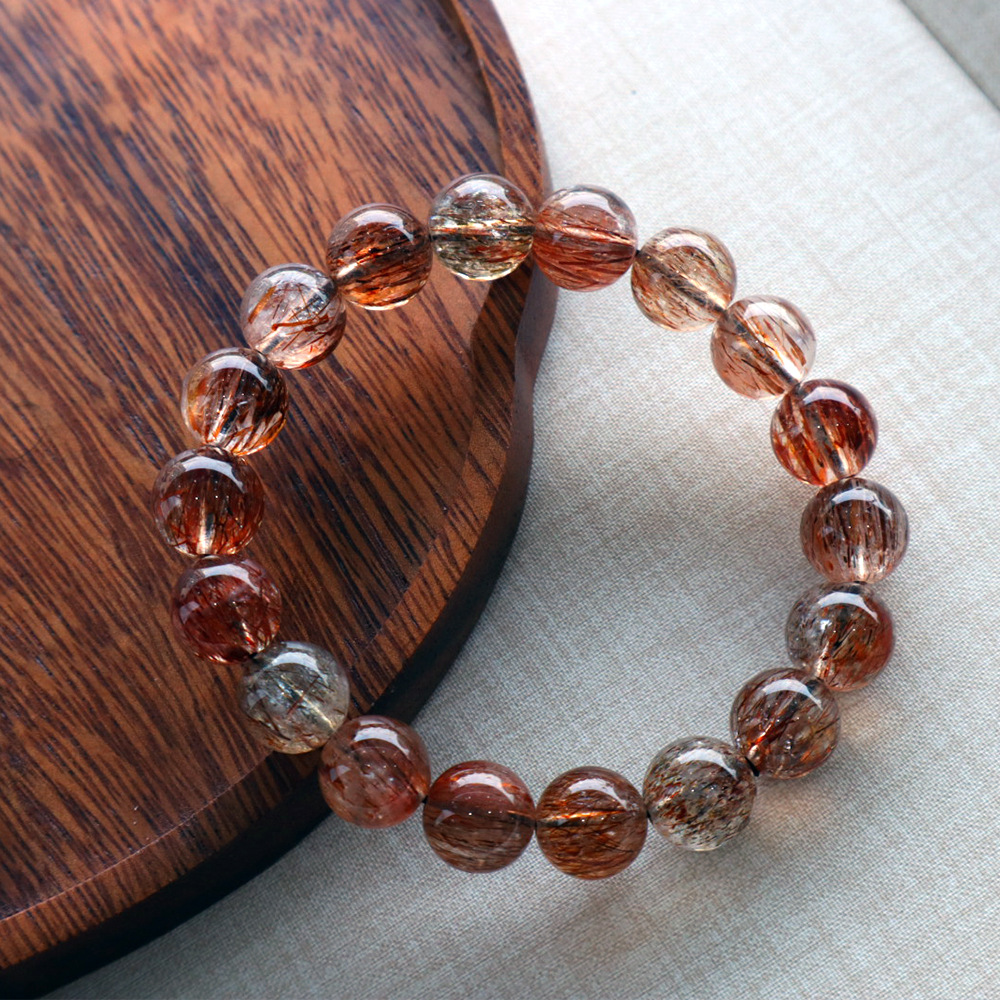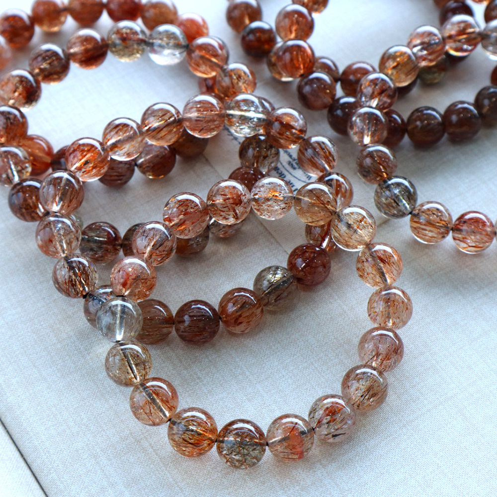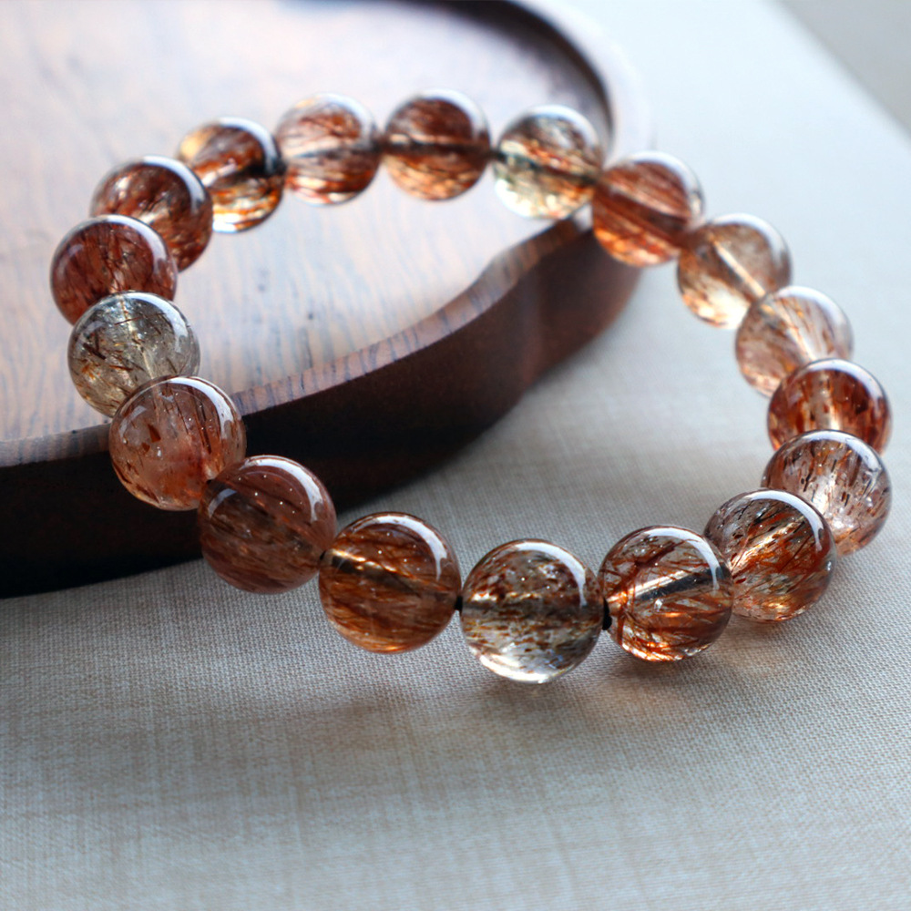 Натуральный высококачественный черный золотой браслет с кристаллами Super Seven в виде одного круга, браслет из титанового кристалла Super Seven, браслет с круглыми бусинами, оптовая продажа