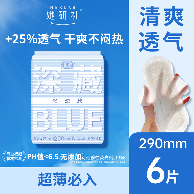 Глубоко скрытая синяя гигиеническая прокладка She Research Institute, комбинированная дневная и ночная ультратонкая хлопковая мягкая, сухая, дышащая и герметичная гигиеническая прокладка, подлинная