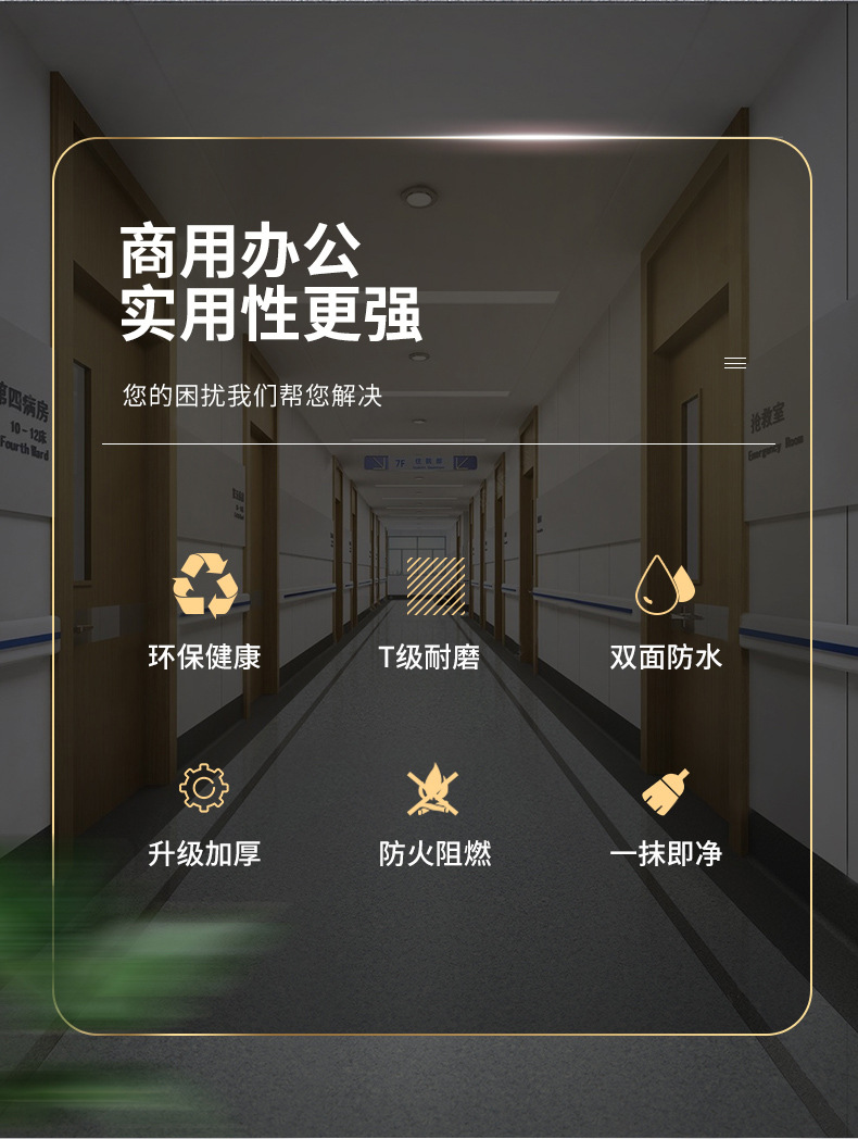 Пластиковый напольный кожаный больничный специальный напольный коврик из ПВХ, коммерческое прямое напольное покрытие, утолщенный износостойкий противоскользящий клей для офисного пола