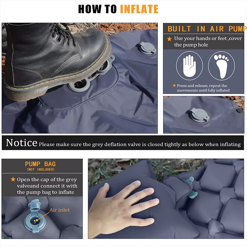 Надувная подушка для ног темно-синего цвета; Надувная подушка для ног синего цвета; Надувная подушка для ног цвета хаки; Зеленая надувная подушка для ног; Серая надувная подушка для ног; Надувная подушка для ног черного цвета; Двойной серый надувной матрас.; Двойной надувной матрас темно-синего цвета.; Двойной надувной матрас военного зеленого цвета.