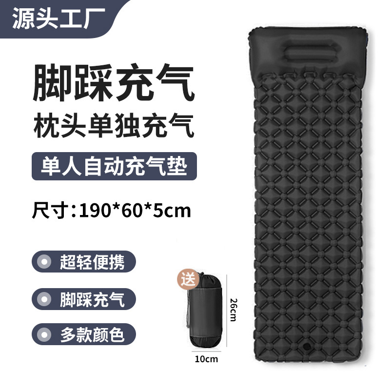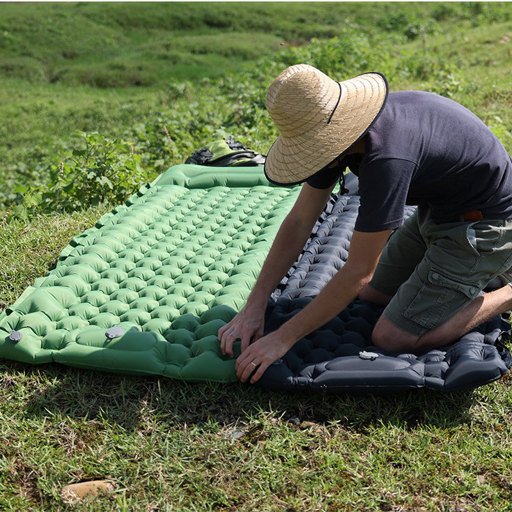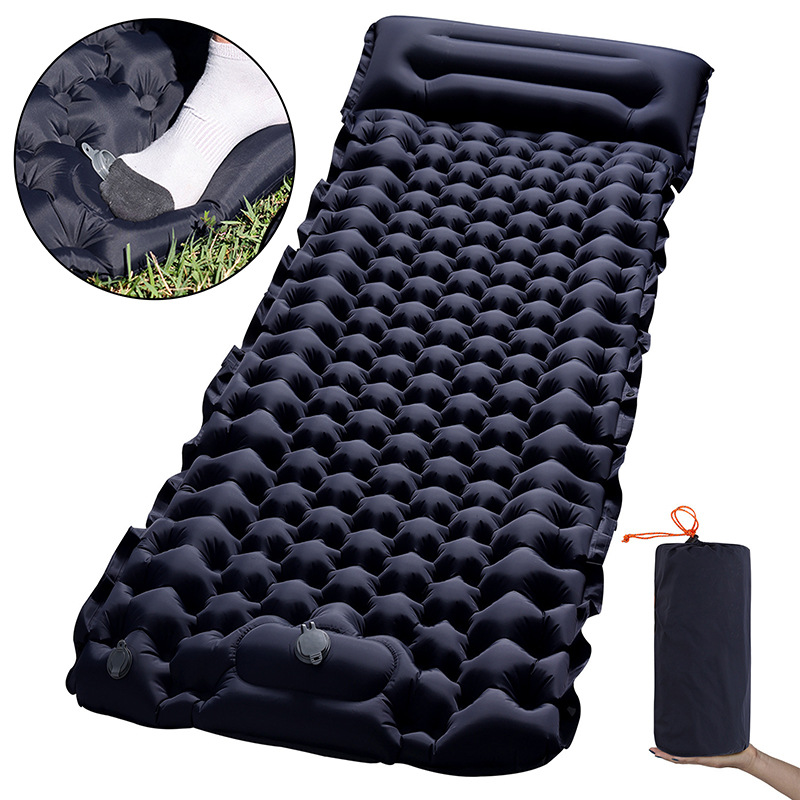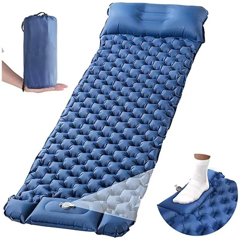 Надувной туристический коврик для кемпинга, односпальный, из водонепроницаемой ткани 40D нейлон, с надувной подставкой для ног