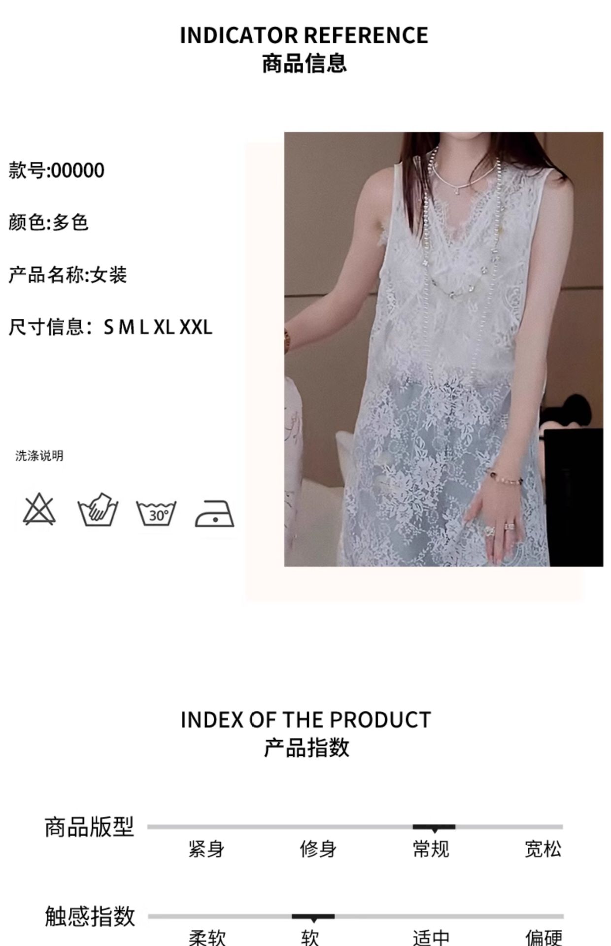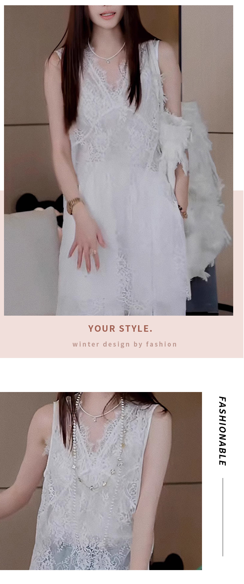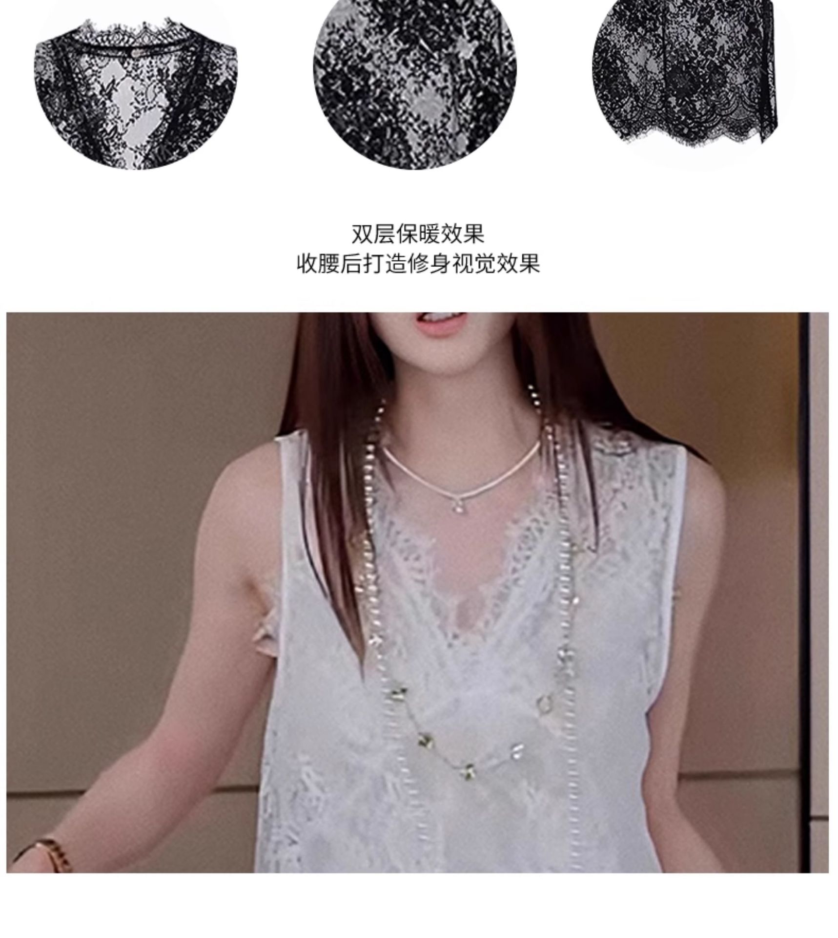 2025 весна новая французская ретро кружевная универсальная блузка-жилет с эффектом стройности, кружевные вырезы, V-образный вырез, многослойное платье для женщин