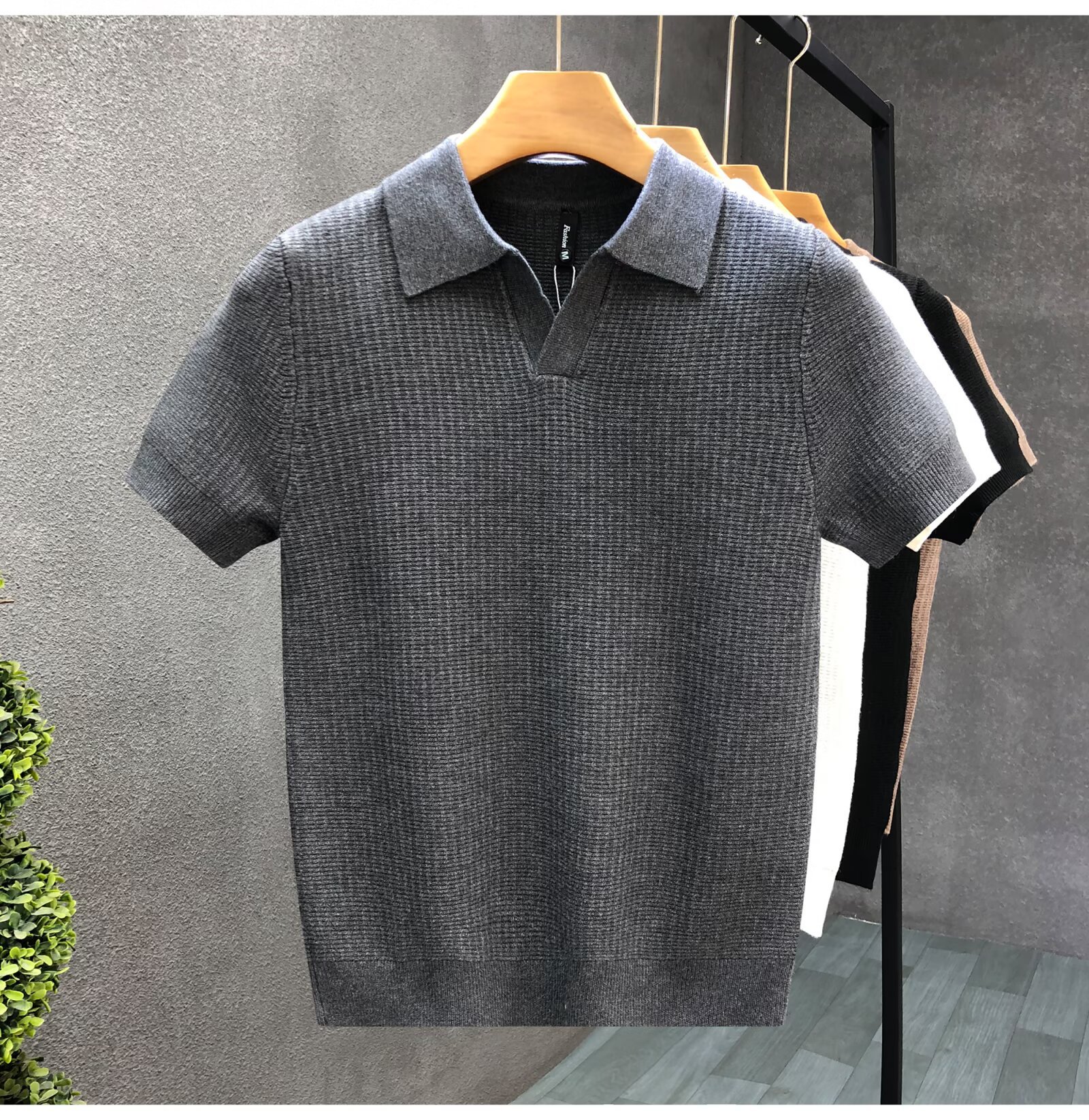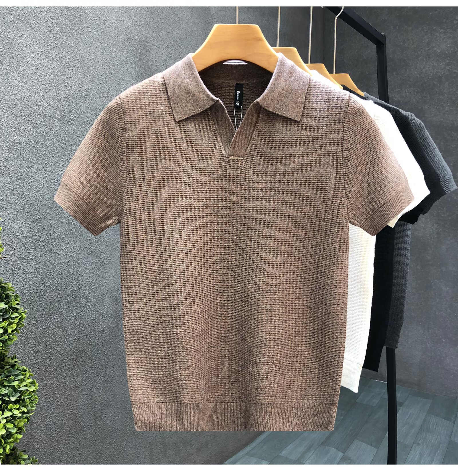 Мужская летняя футболка 2025 года, новый стиль, трикотажная, из лиоцелла, с коротким рукавом и воротником-стойкой, тонкая, не мнется