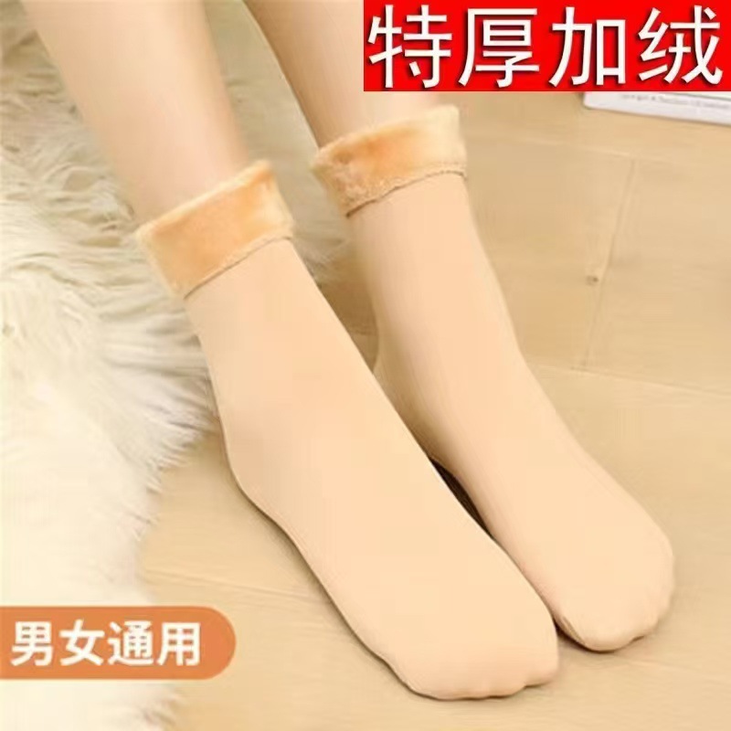 Осенние и зимние снежные носки для женщин и мужчин, на флисовой подкладке и утолщенные, средней длины, телесного цвета, теплые короткие носки для пар, домашние носки для пола.
