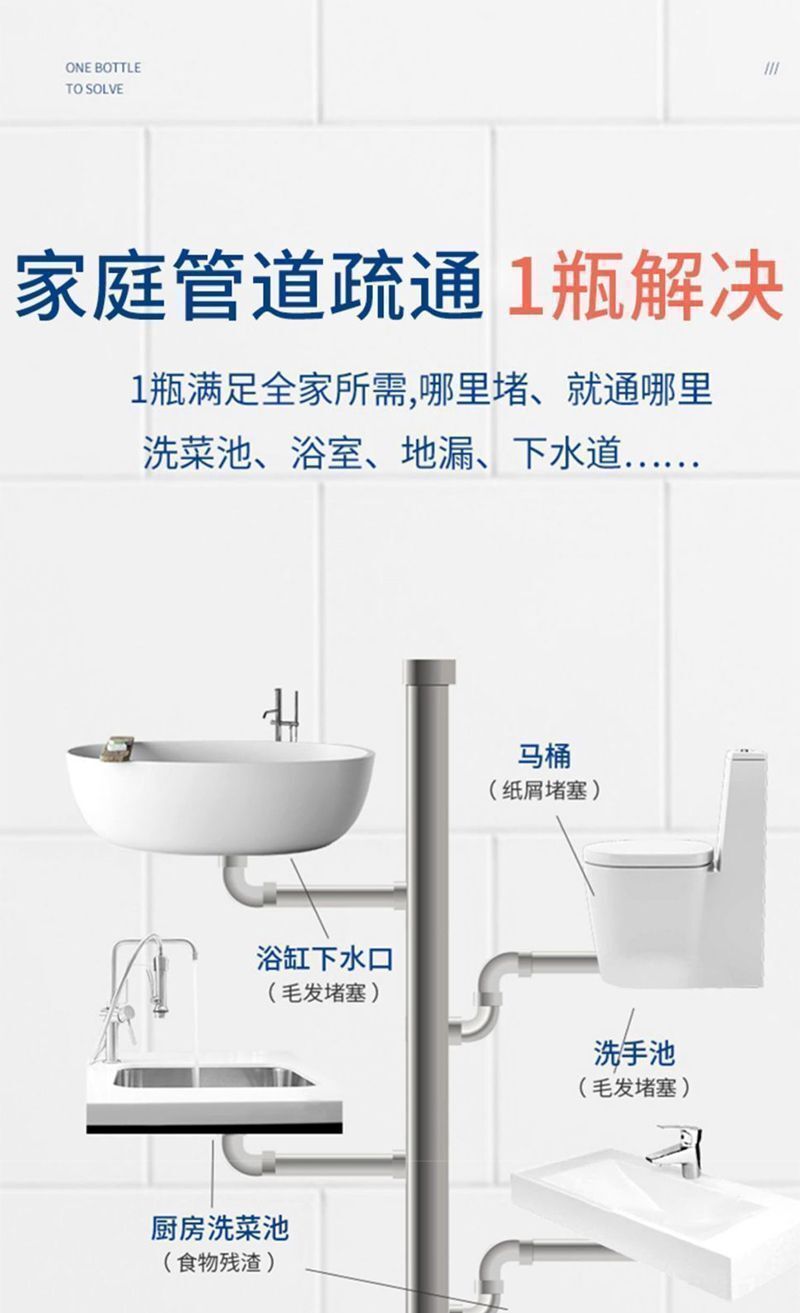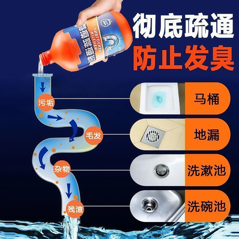 Разблокировщик труб, унитаз, сильная растворяющая способность, разблокировщик труб для дезодорации канализации и удаления запахов.