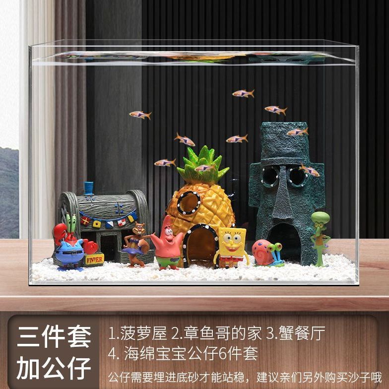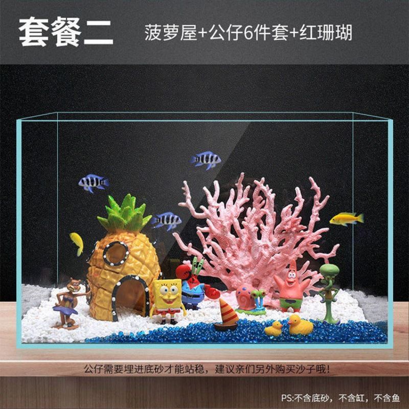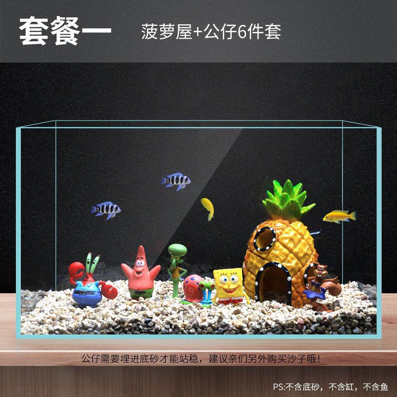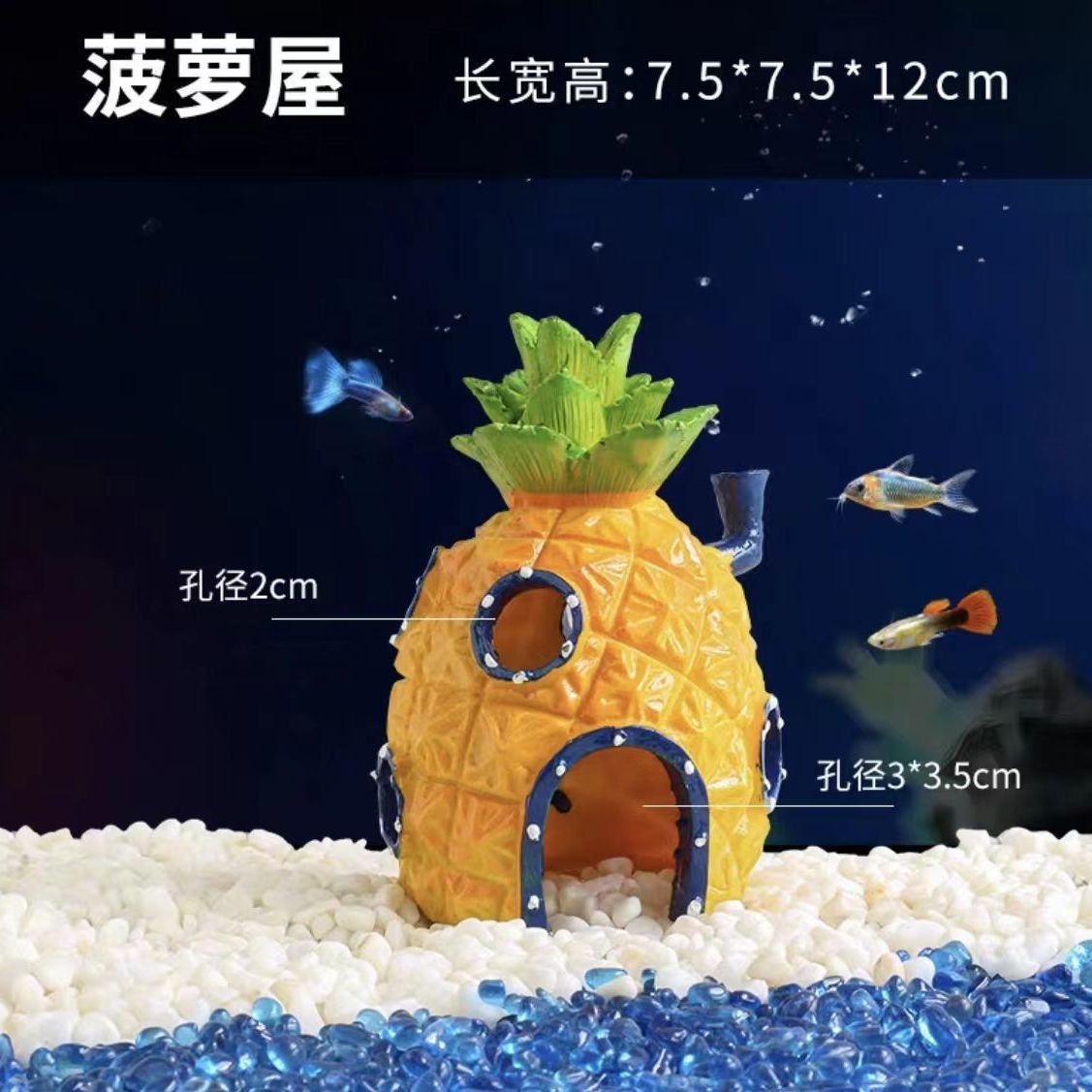 Ландшафтный дизайн аквариума, домик Спанч Боба, домик-ананас, мультяшные искусственные украшения, домик для разведения, укрытие, аквариумное украшение, комплект