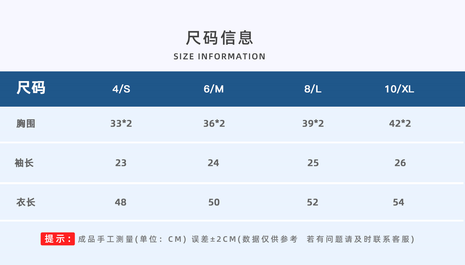 S/4; M/6; L/8; XL/10