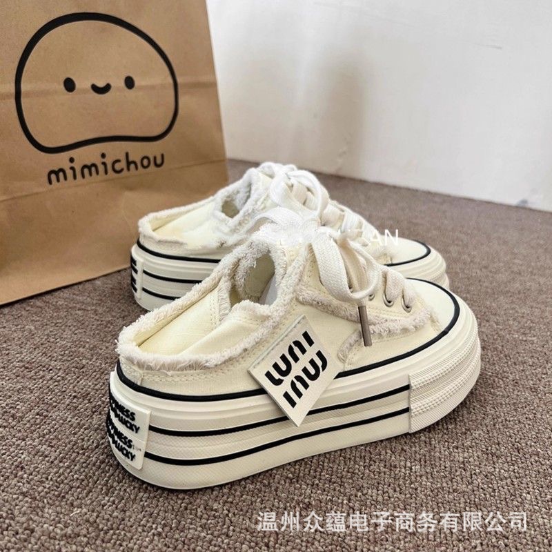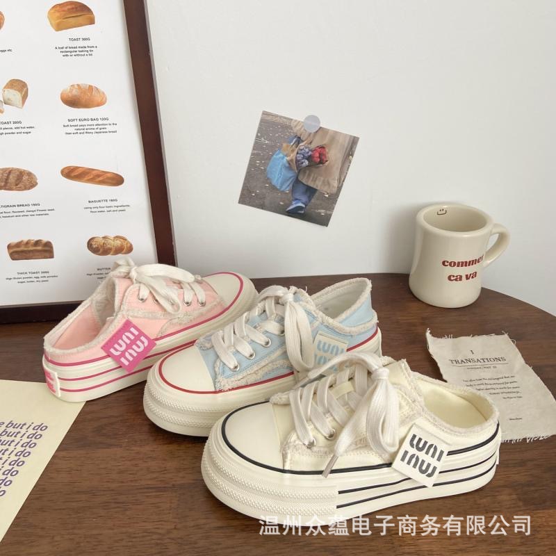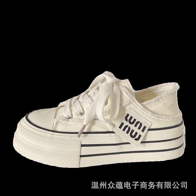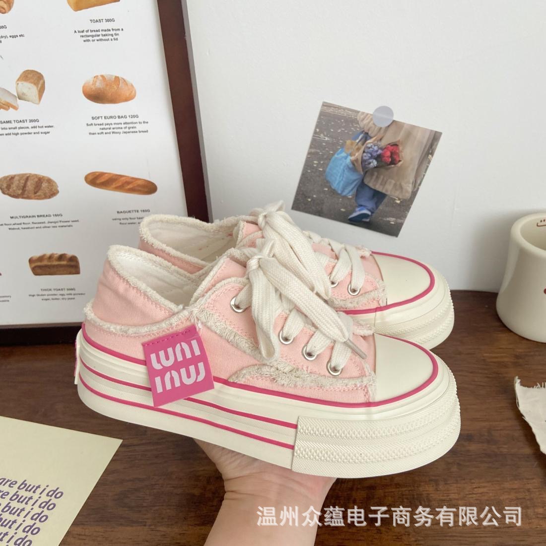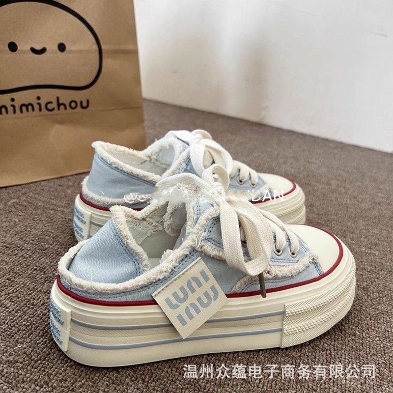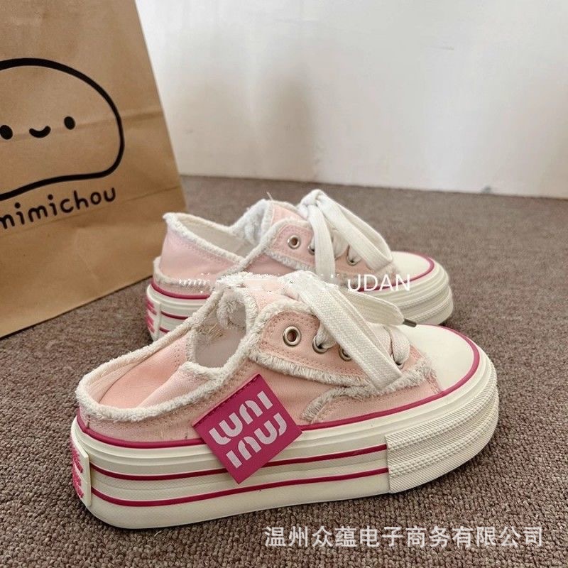 Женские кеды из плотной ткани с розовыми кистями, необработанным краем и толстой подошвой, весна-осень 2025, новые, повседневные, универсальные, в стиле ins