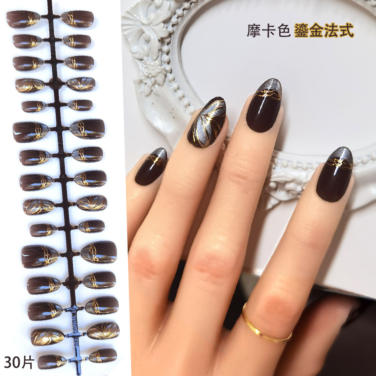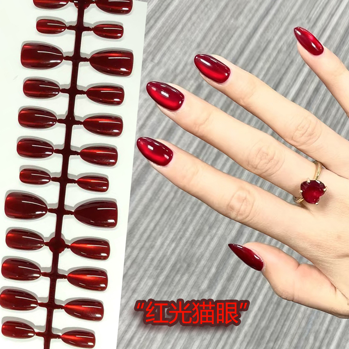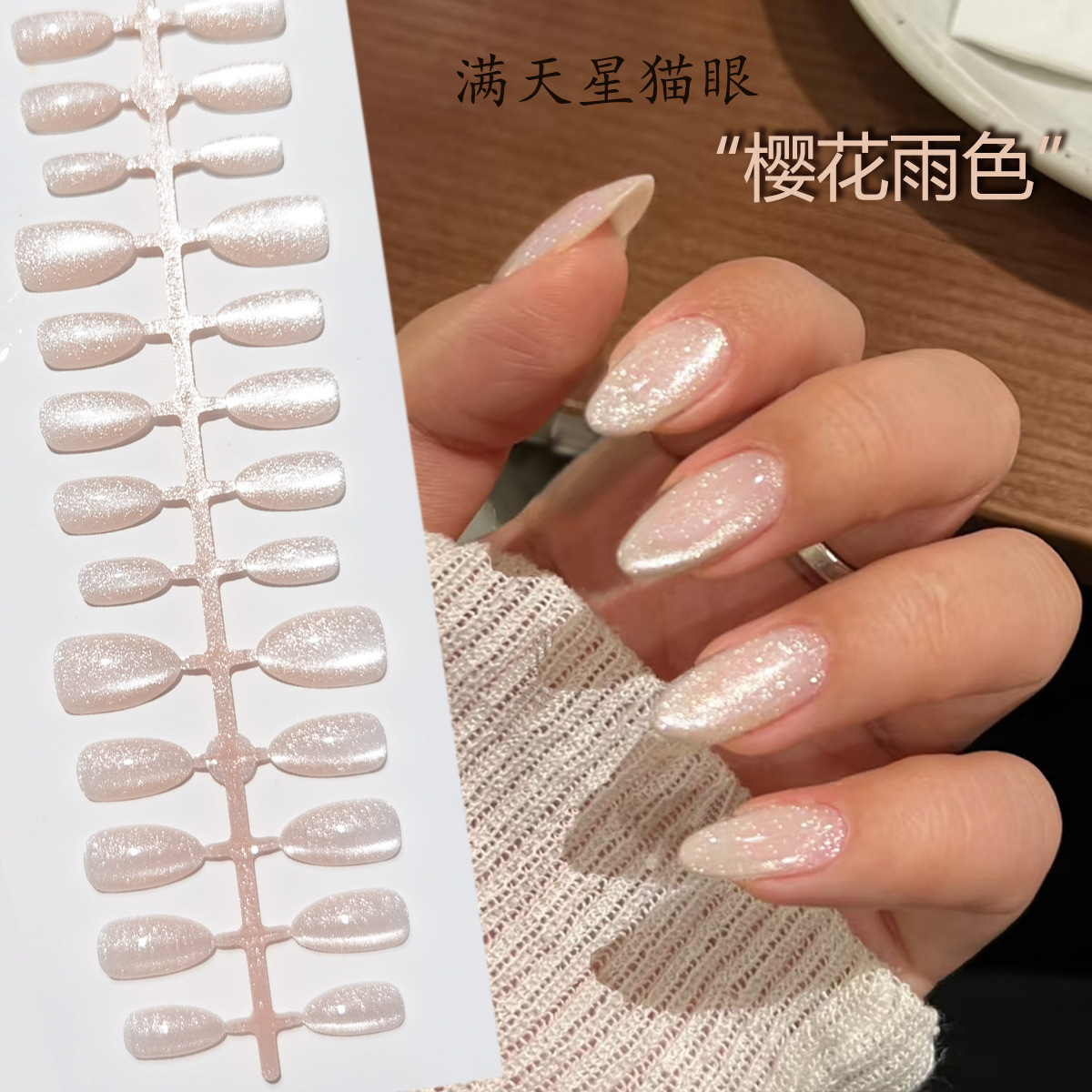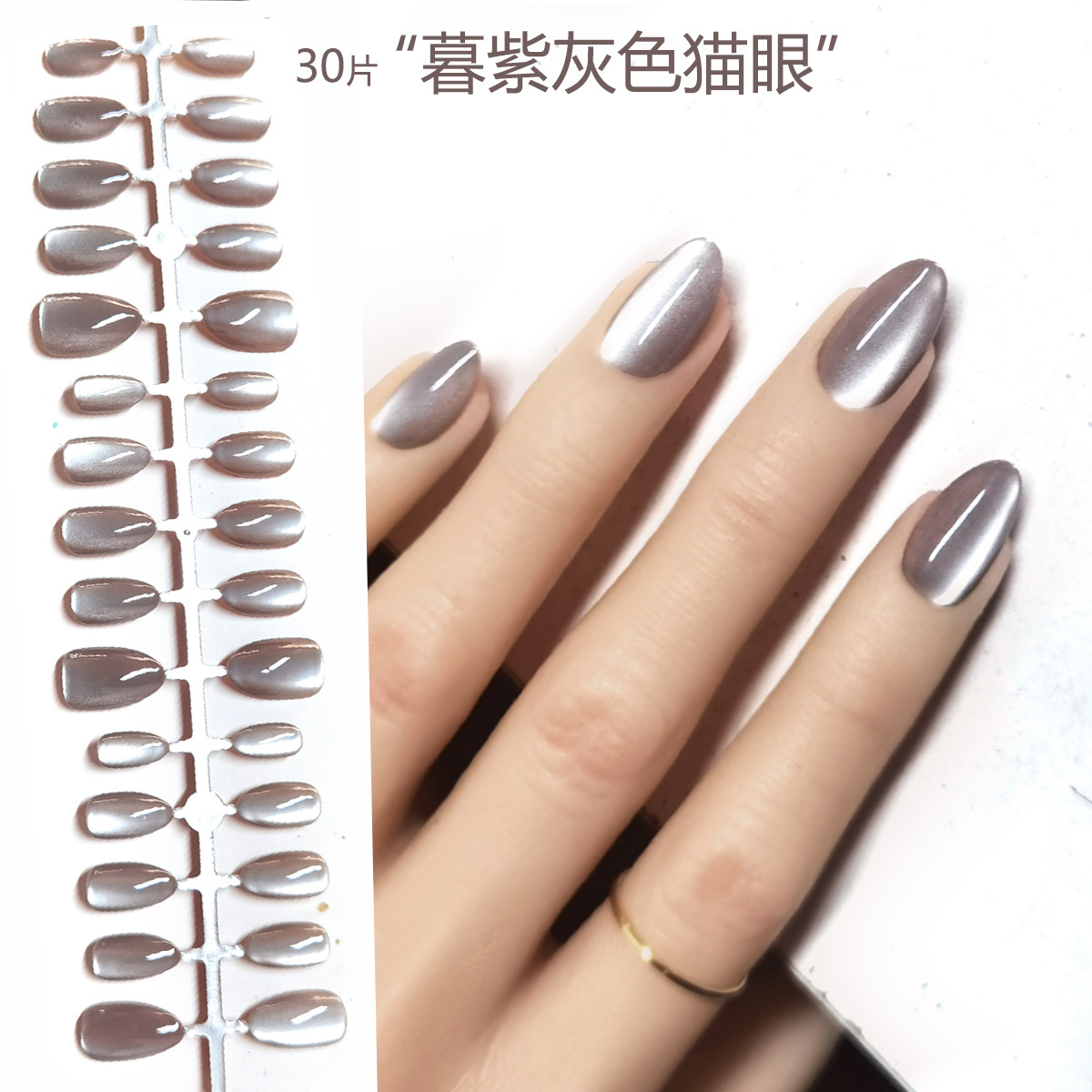 Готовые накладные ногти «кошачий глаз», 30 шт., носимые миндалевидные ногти телесного цвета, короткие стильные наклейки для маникюра ручной работы