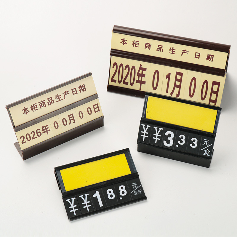 L-образный черный ценник; Подвешивание черного ценника; Треугольная табличка с датой; L-образная табличка с датой