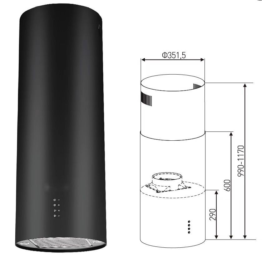 Круглая вытяжка, островная вытяжка, плоская вытяжка с верхним всасыванием, островная подвесная цилиндрическая вытяжка