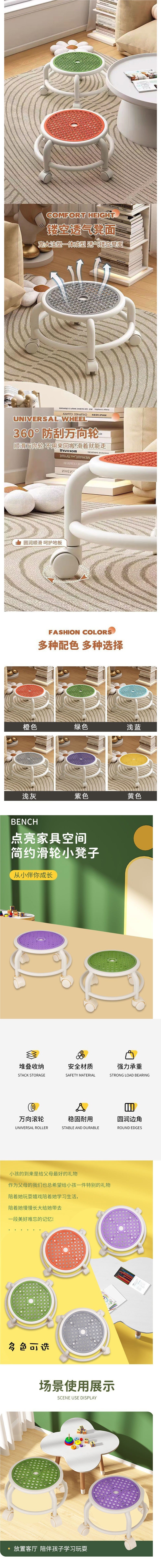 Поворотный маленький табурет на колесиках, низкий табурет для домашнего использования, маленький табурет с герметичным швом, маленький круглый табурет на колесиках.