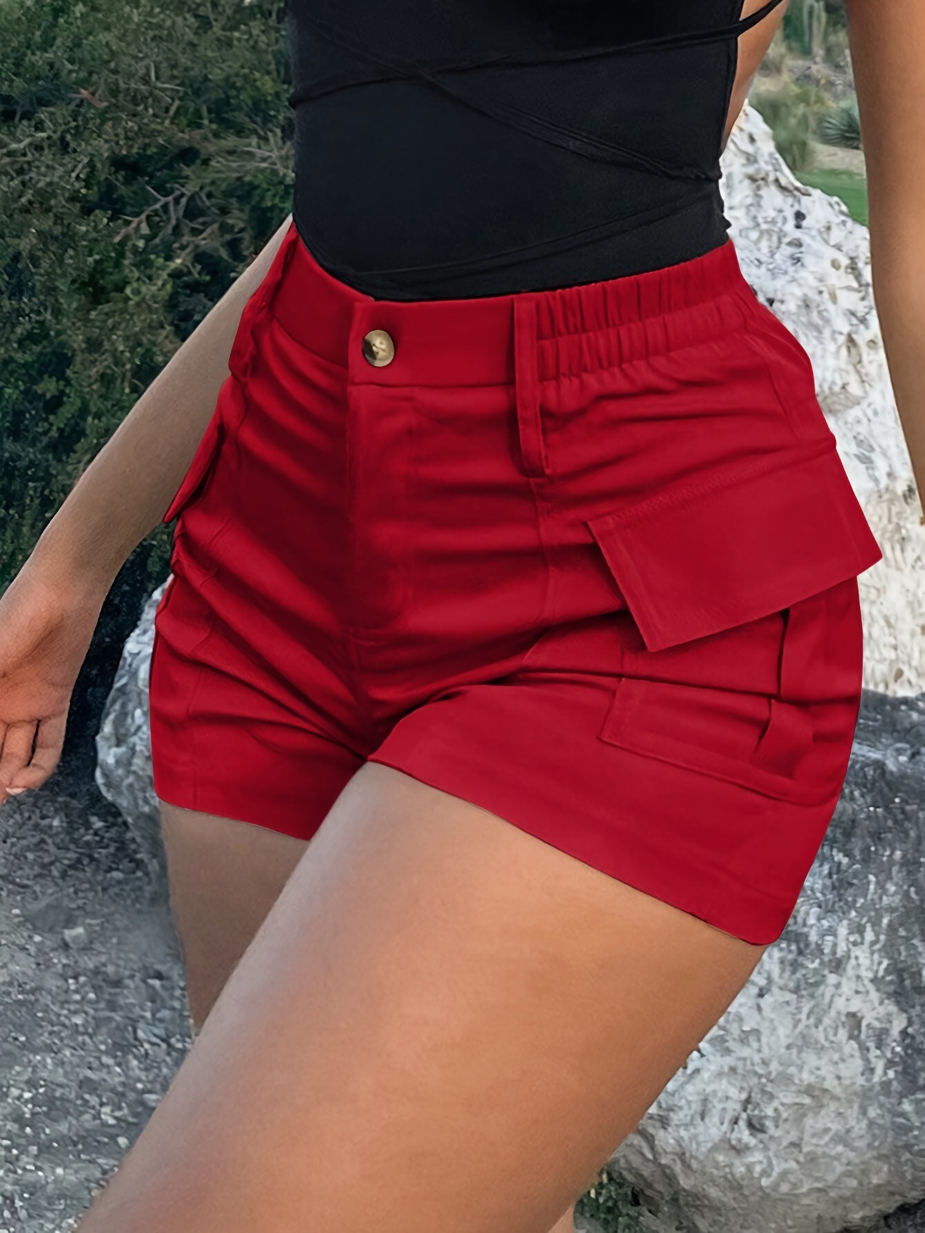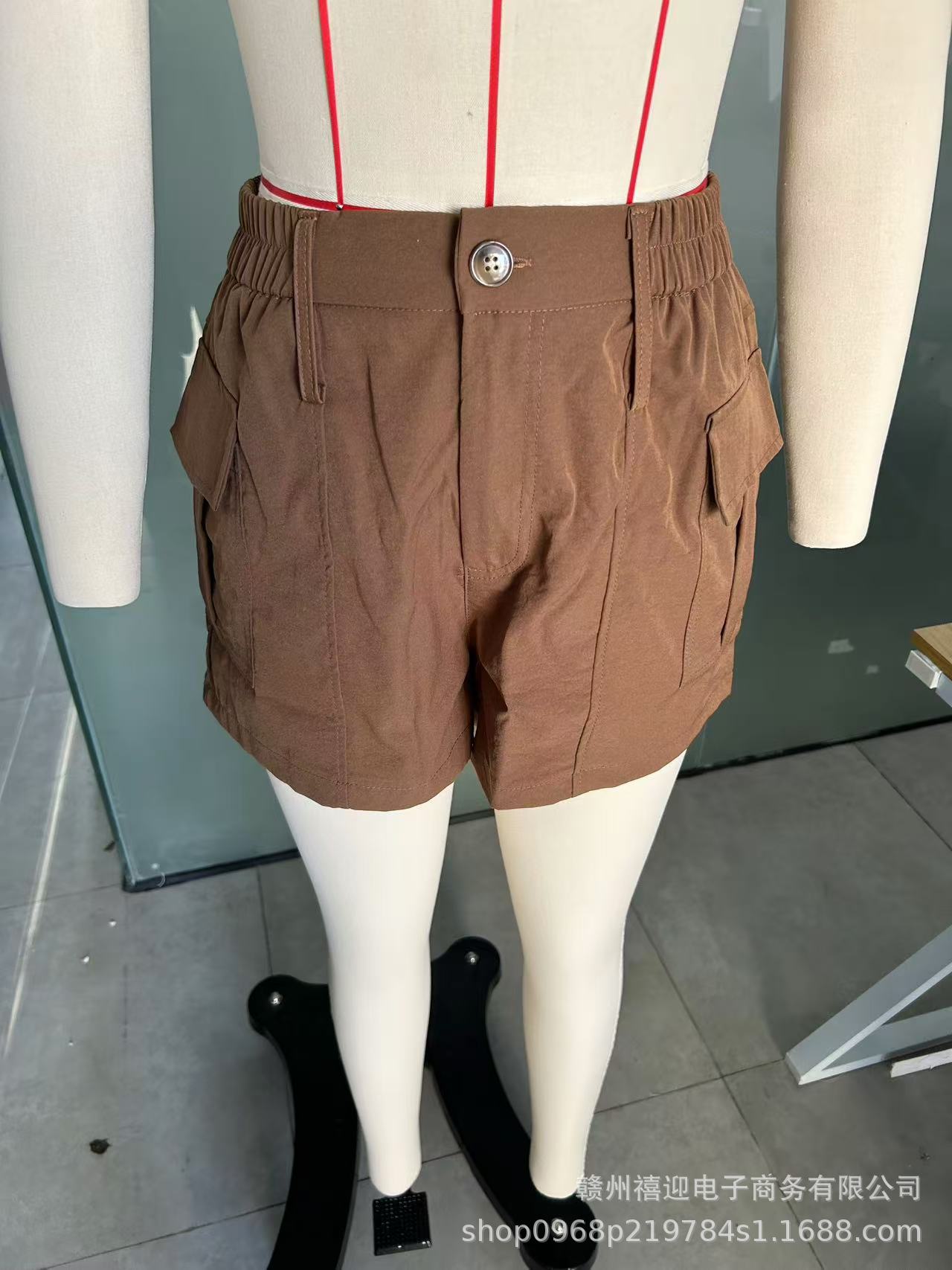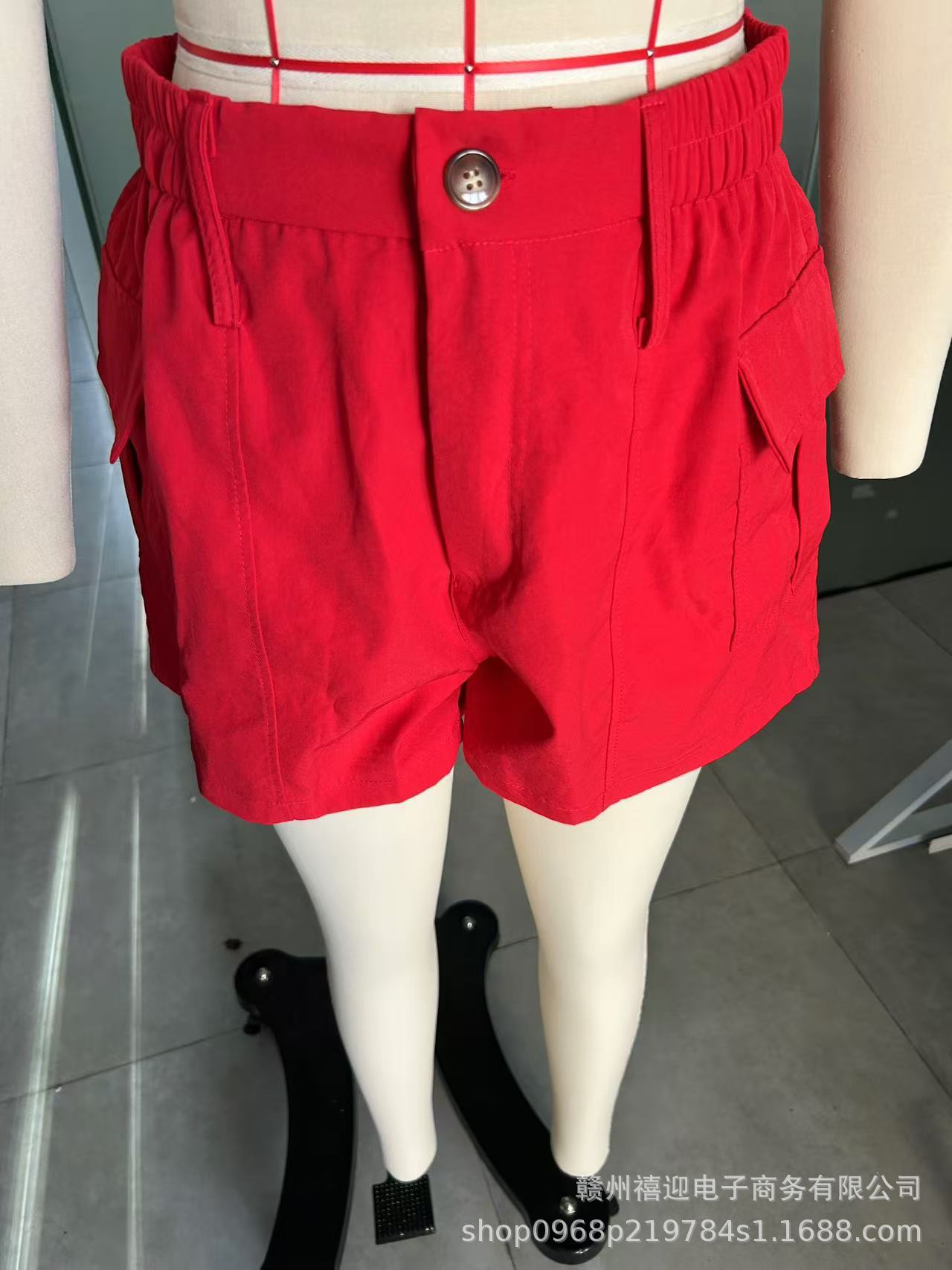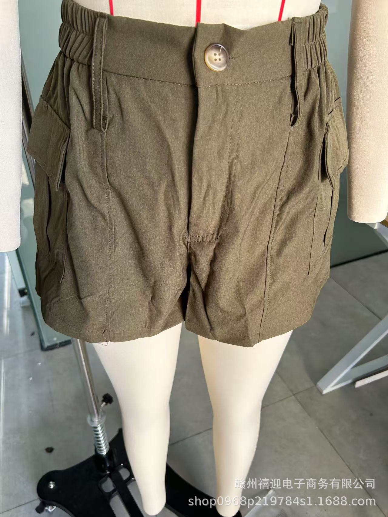 2025 Европейский и американский стиль кросс-бордерные женские повседневные шорты с высокой талией на пуговицах и карманами-клапанами в стиле стрит-стайл