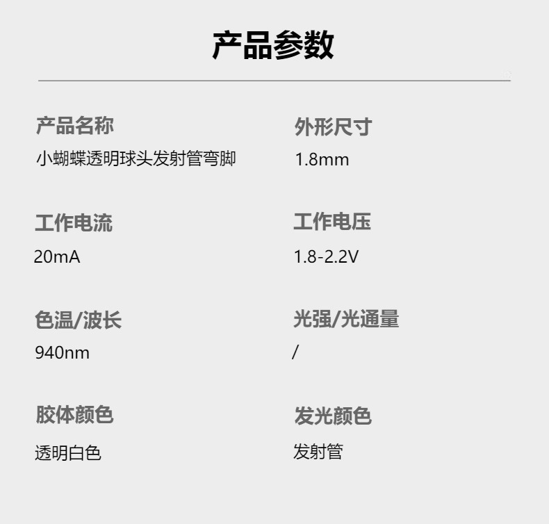 Маленькая прозрачная шаровая головка-бабочка, инфракрасная излучающая трубка 940, изогнутые ножки вниз, диод TR7