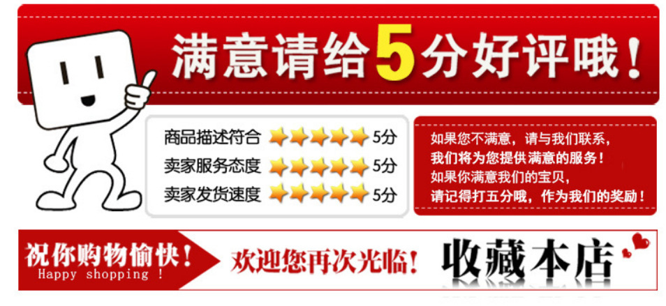 - 买家签收时需本人签收或者委托第三方签收,请买家签收时务必查看外包装是否完整,如有破损,明显挤压变形等,检查所购买商品数量和外观问题,如有问题请立刻联系我们或者拒绝签收,一旦签收了就是默认收到的东西是完好无缺的,如有损失只能由买家自己承担!