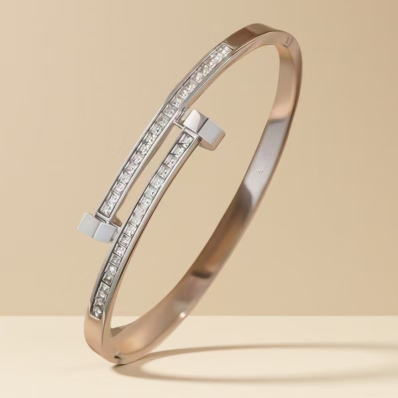 Женский браслет из нержавеющей стали с цирконом из титановой стали, ювелирные изделия, трансграничные поставки, трехцветный браслет, производитель, оптовая продажа