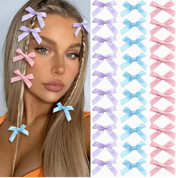 丝带蝴蝶结发夹 巴蕾风编发发夹 YK2发夹 斜角多色蝴蝶结发夹