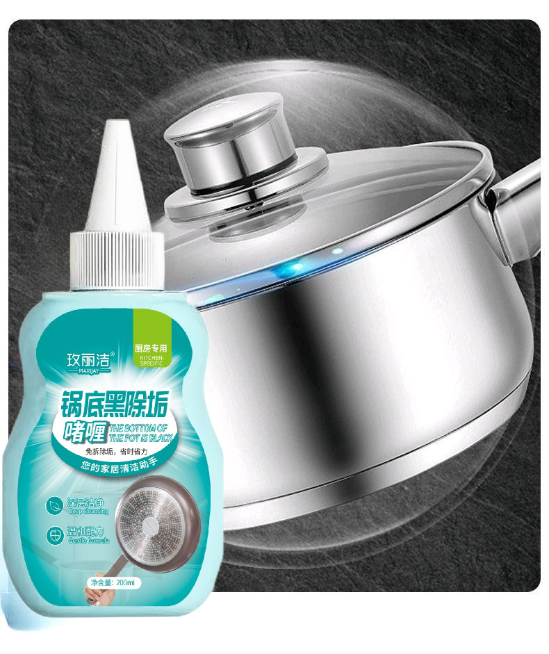 Гель для чистки дна кастрюли, черный гель, 200 мл, бытовая техника большой емкости, кухонная чистка и обеззараживание масляных пятен, готова к прямой доставке