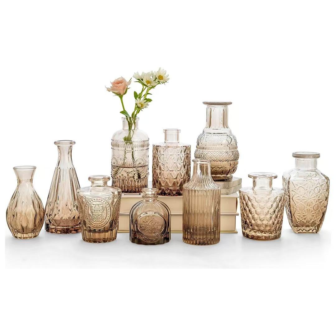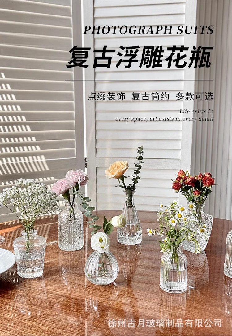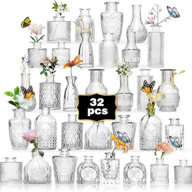 Хит продаж: ретро-стеклянная ваза, прозрачная гидропонная ваза для декора рабочего стола, миниатюрная декоративная ваза