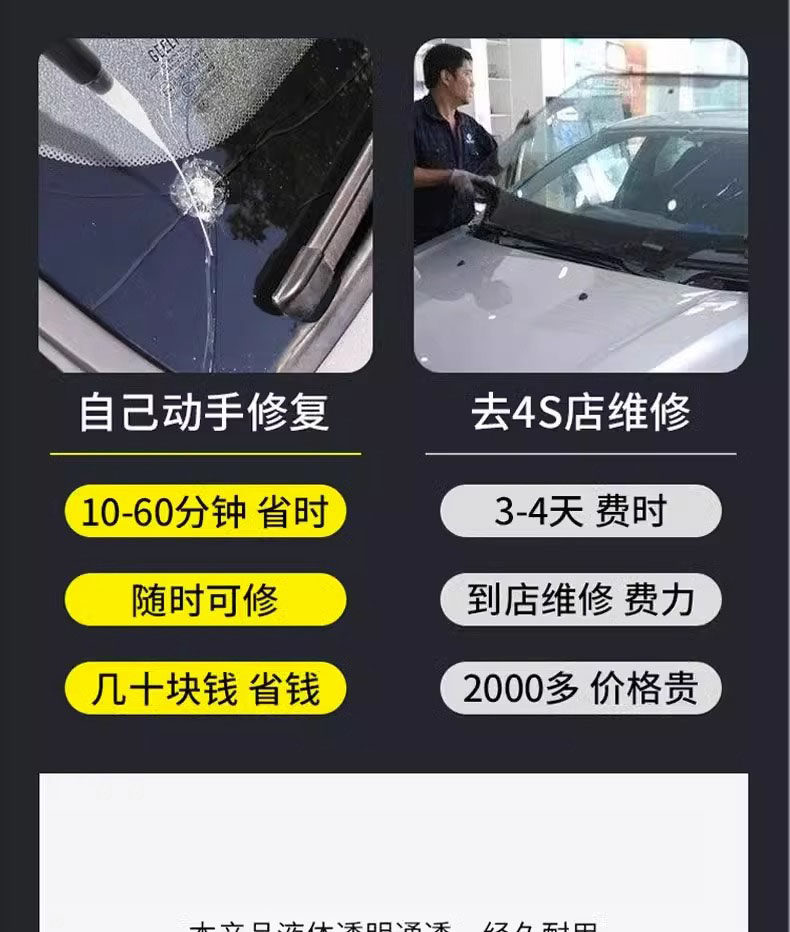 Бытовой редуктор трещин на окнах, автомобильное стекло, переднее лобовое стекло, длинная трещина, ремонт царапин, жидкость для ремонта повреждений