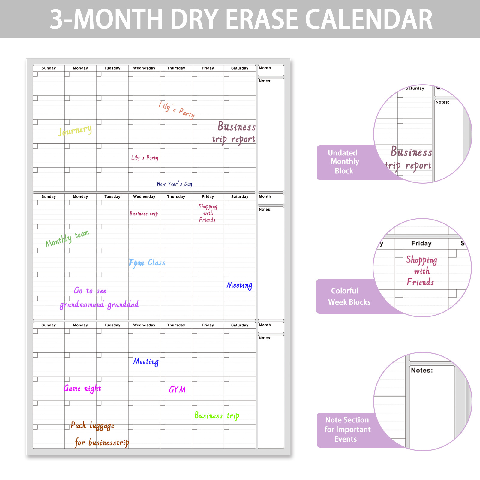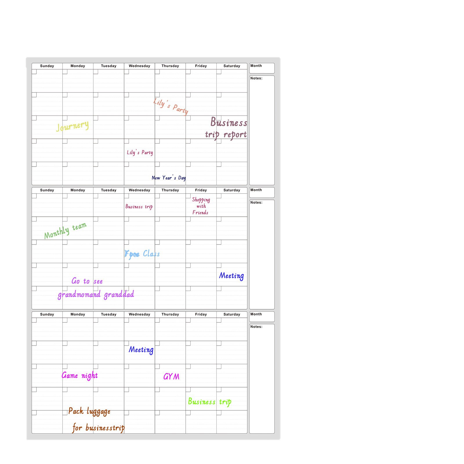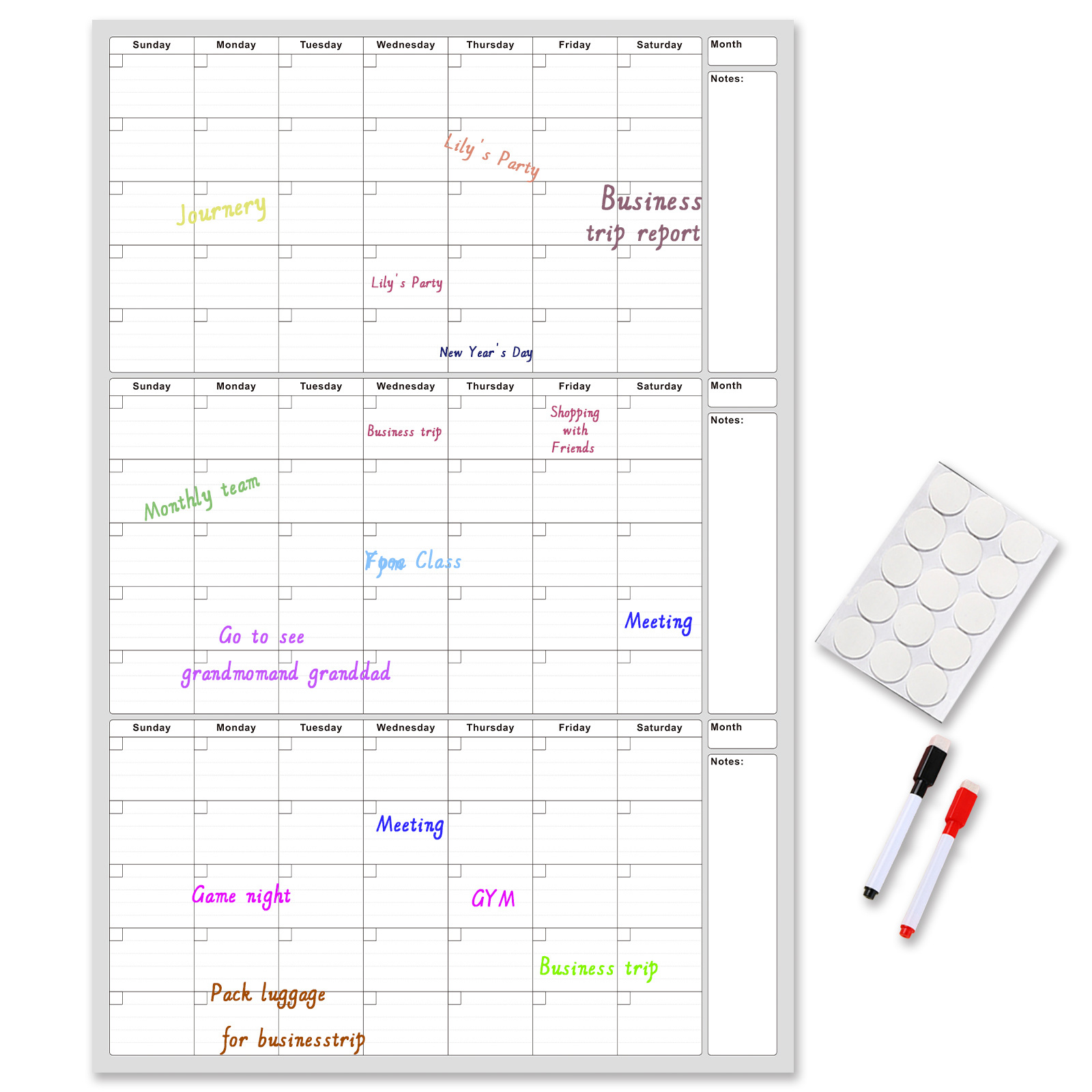 3-месячный стираемый настенный календарь - 24x36inch; 3-месячный стираемый настенный календарь- 46x63inch