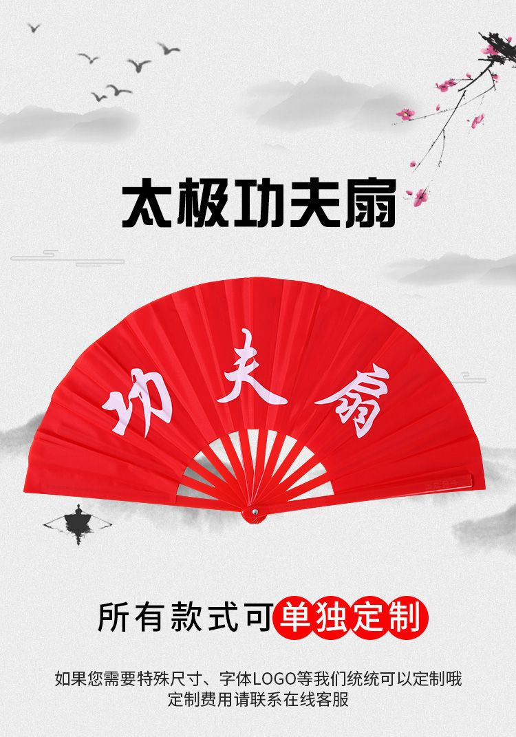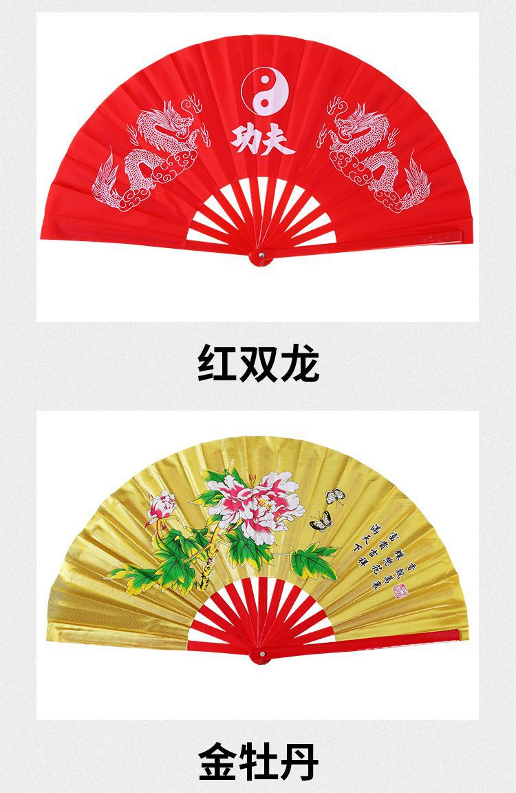 Веер Тай Чи, веер Кунг-фу, двусторонний золотисто-красный бамбуковый веер в китайском стиле, студенческий веер для боевых искусств, детский танцевальный веер