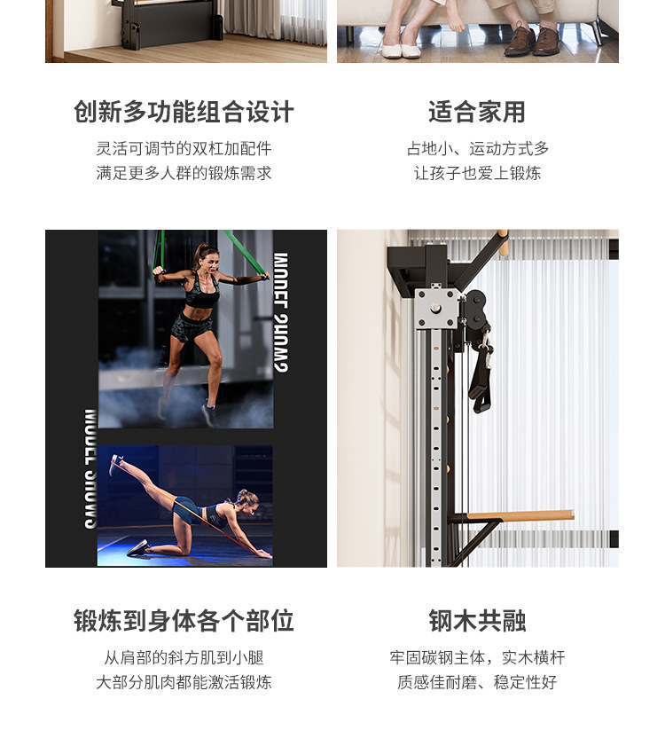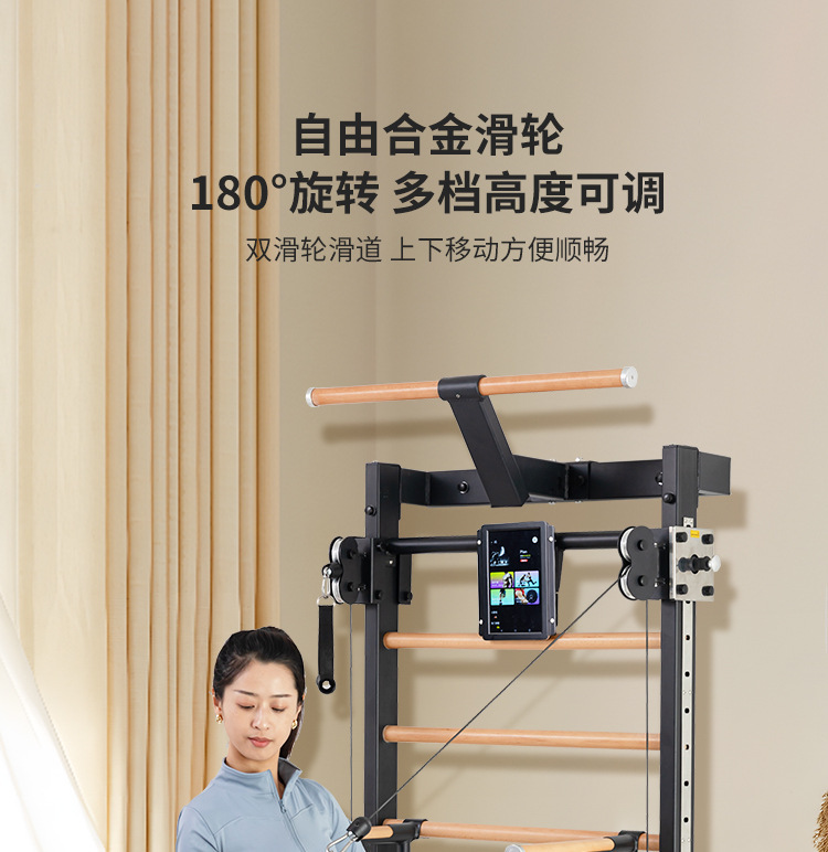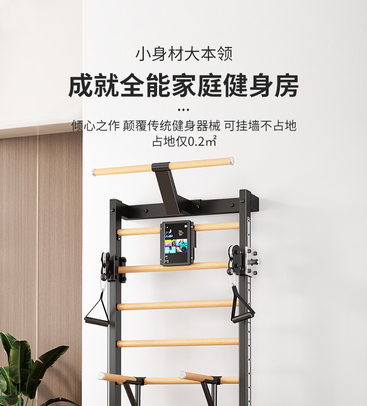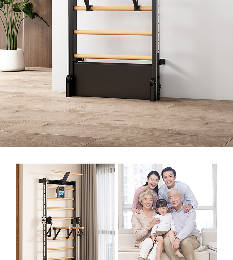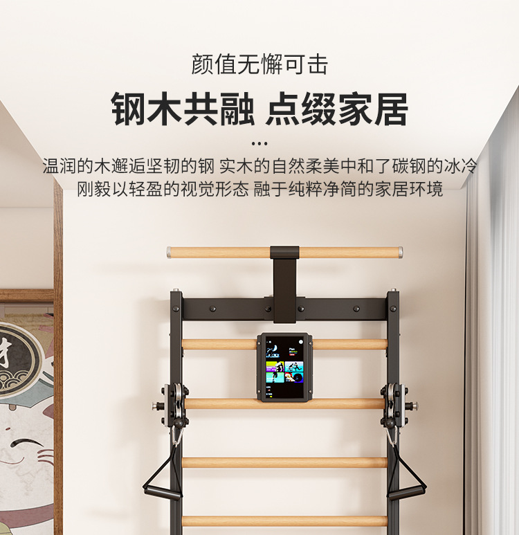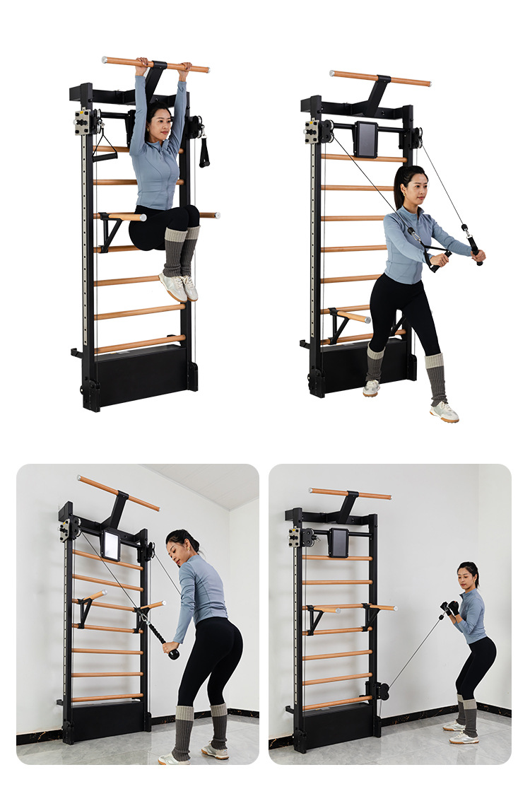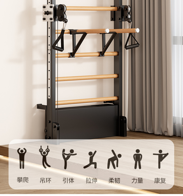 Многофункциональный домашний тренажер для фитнеса с деревянной рамой: турник, тренажер для ног, растяжка, умный тренажер для йоги с двумя рукоятками, компактный