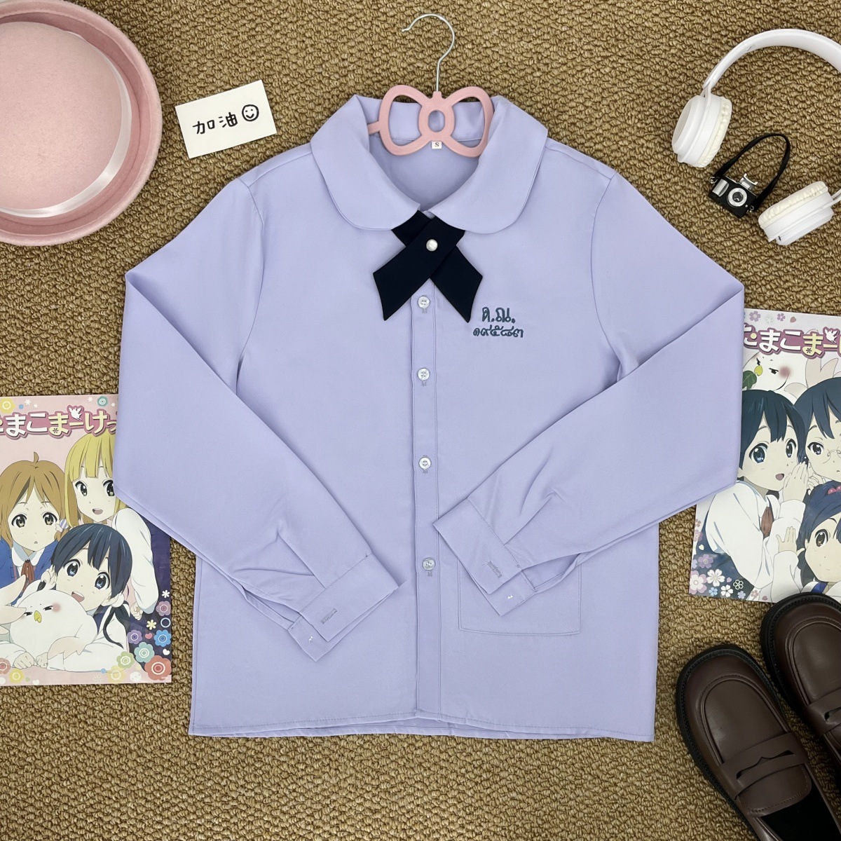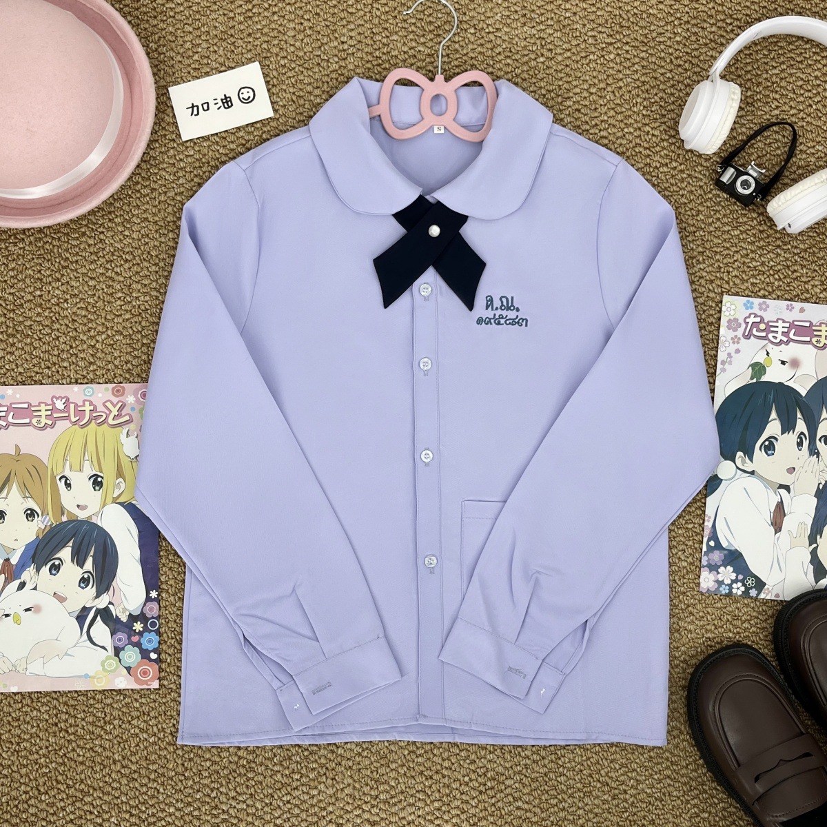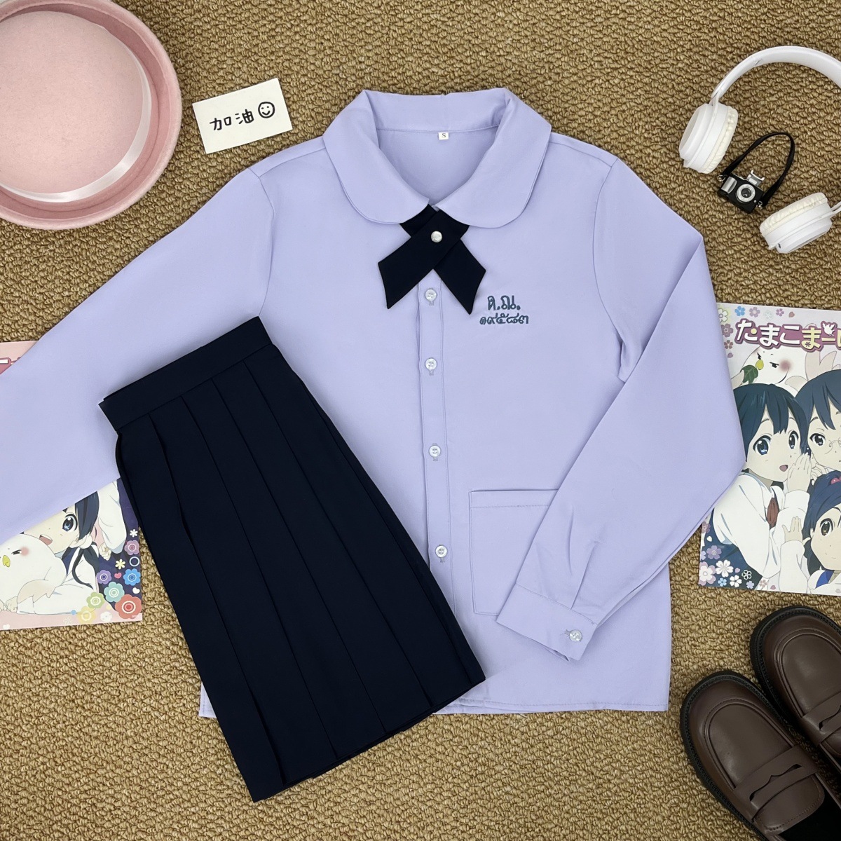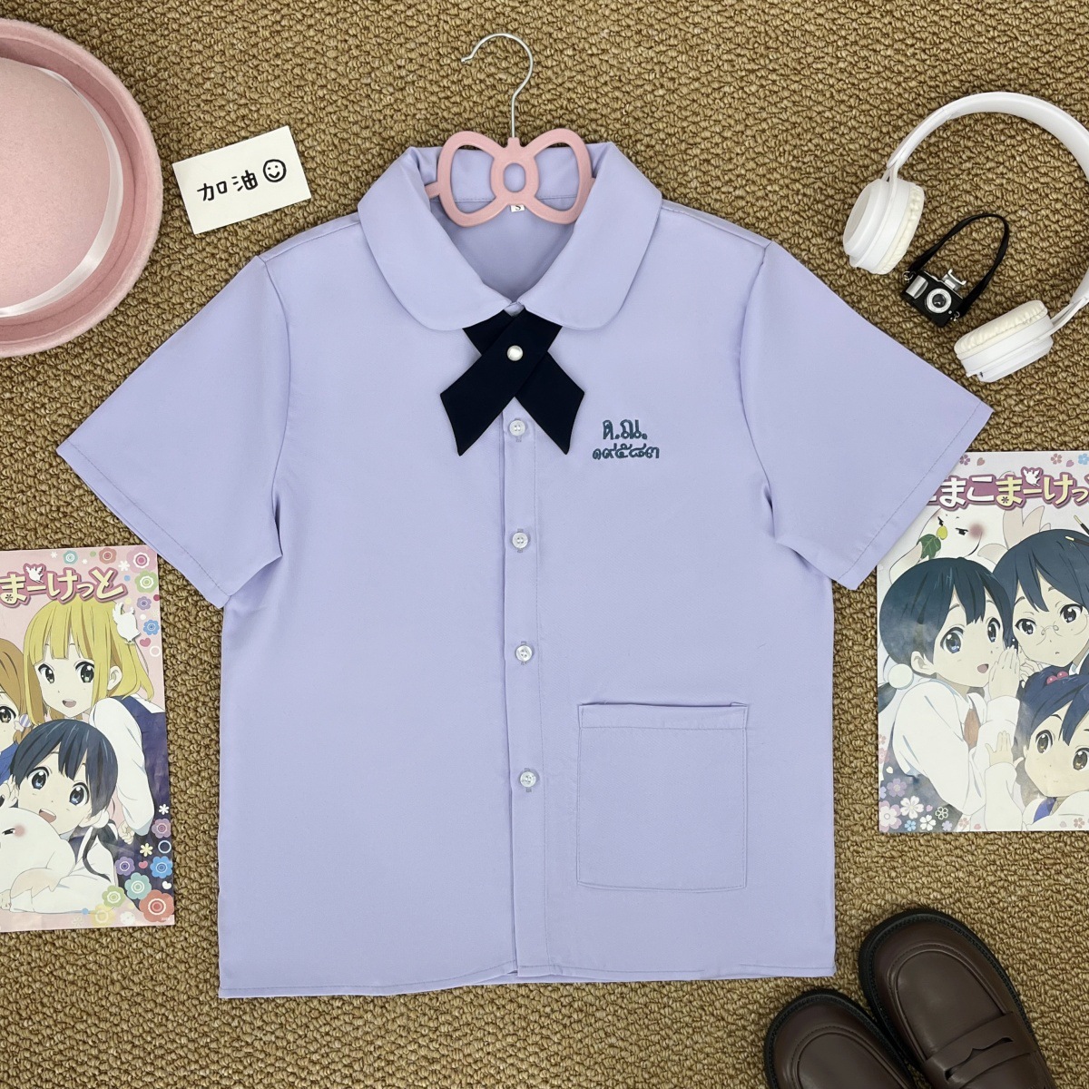 Тайская школьная форма, женская рубашка с короткими рукавами + широкий крестовый узел голубого цвета; Тайская школьная форма, женская рубашка с длинными рукавами + широкий крестовый узел голубого цвета; Тайская школьная форма, женская рубашка с короткими рукавами + широкий крестовый узел голубого цвета + прямая юбка голубого цвета; Тайская школьная форма, женская рубашка с длинными рукавами + голубой широкий крест + голубая прямая юбка