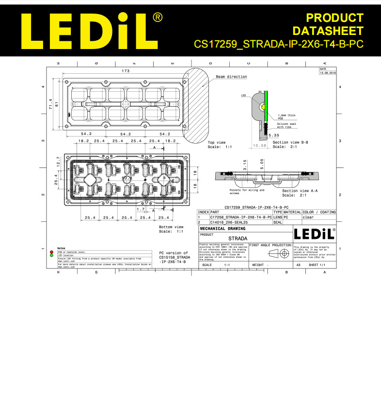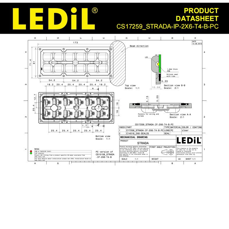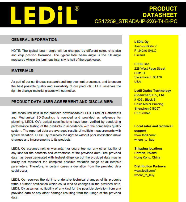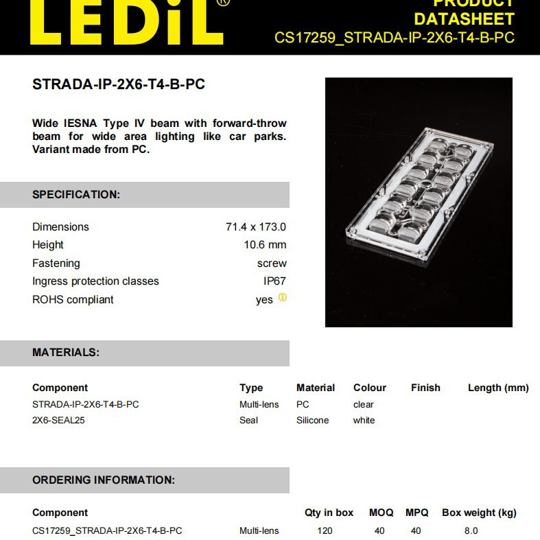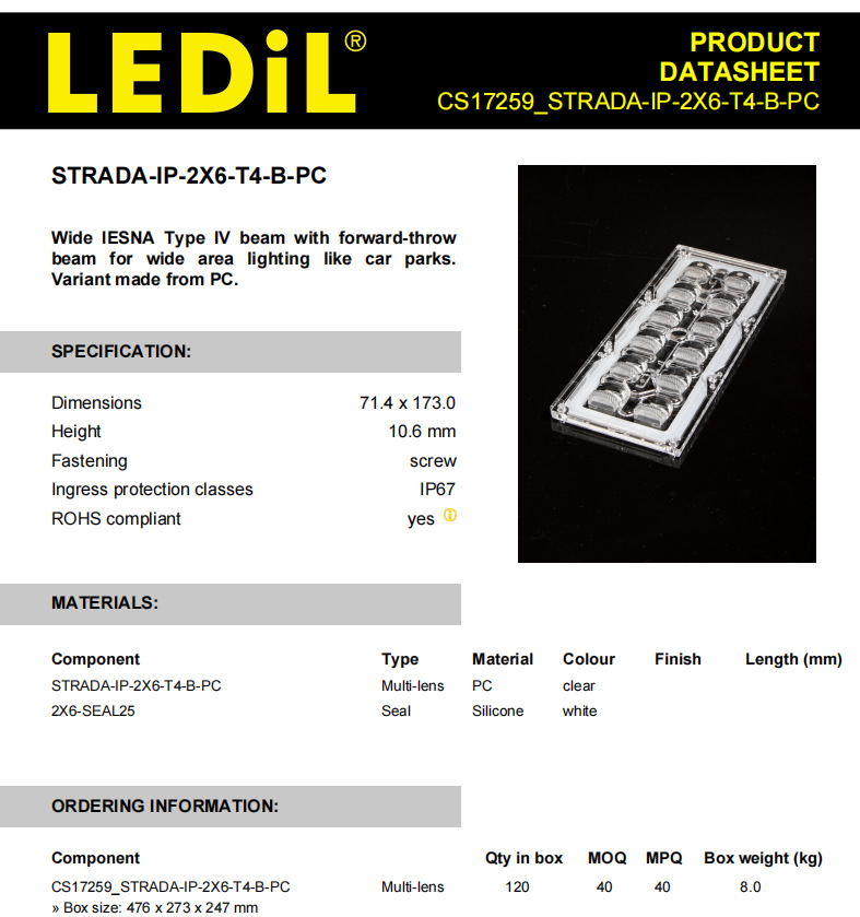 LEDiL Финляндия линза CS17259_STRADA-IP-2X6-T4-B-PC LED линза и компоненты