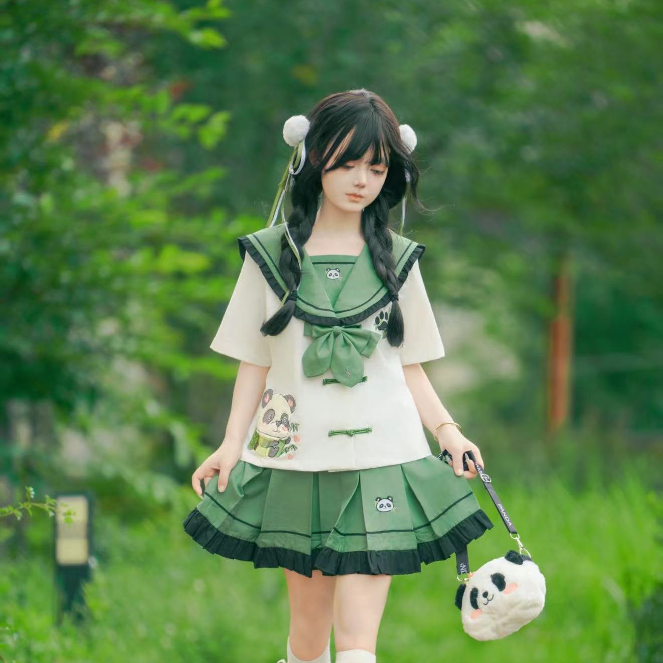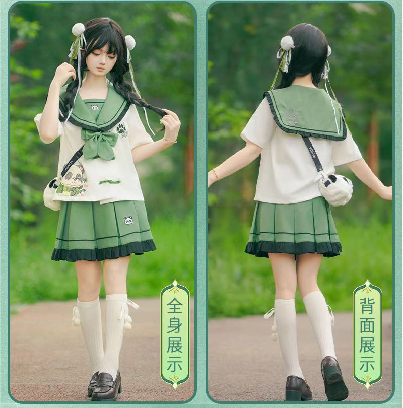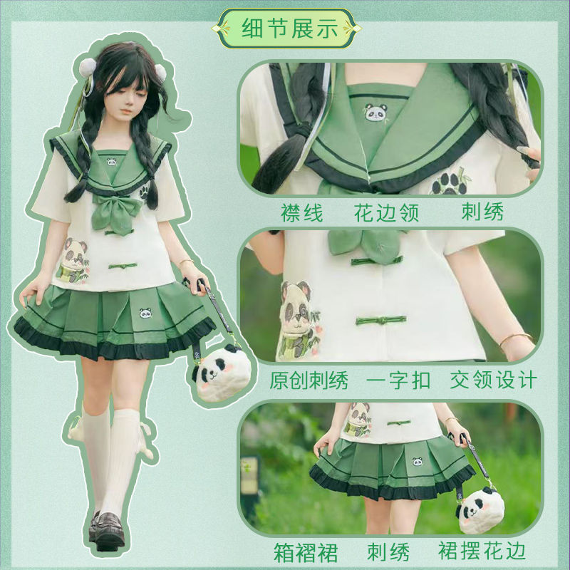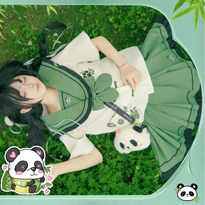 Новый оригинальный аутентичный [Zhi Zhu] милый костюм с короткими рукавами в китайском стиле с тематикой панды