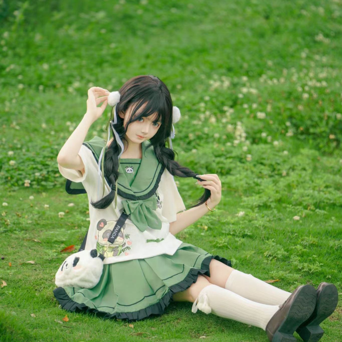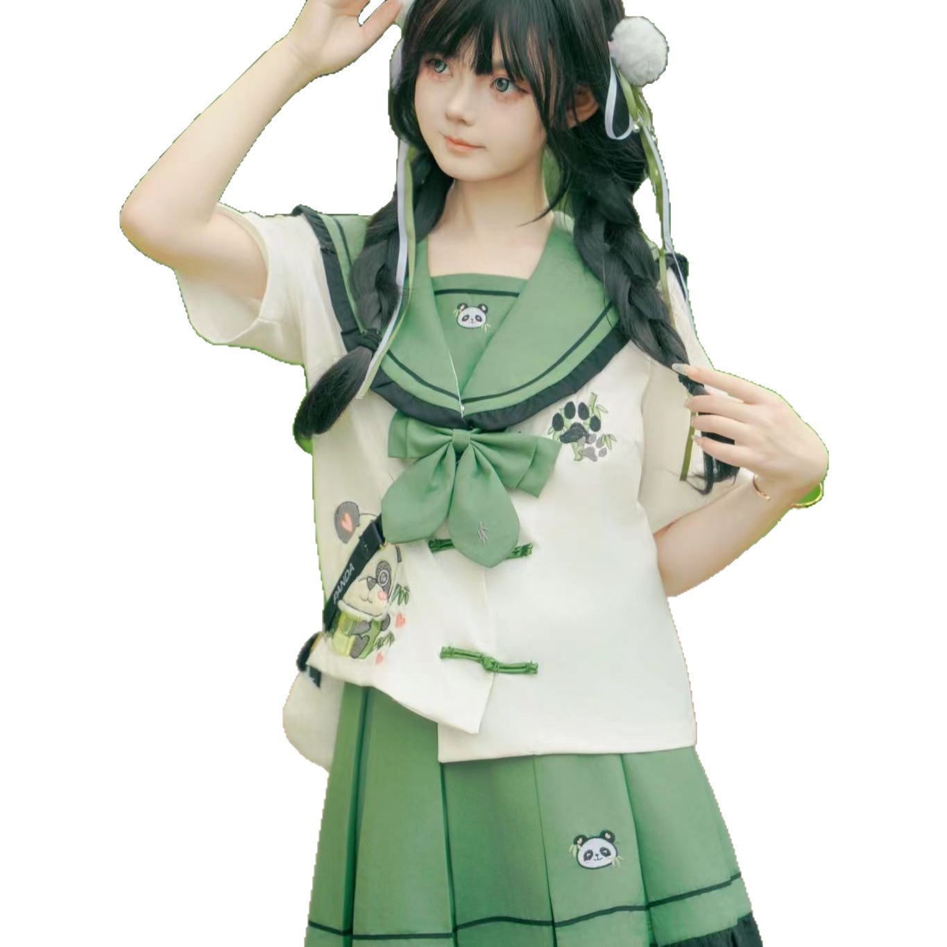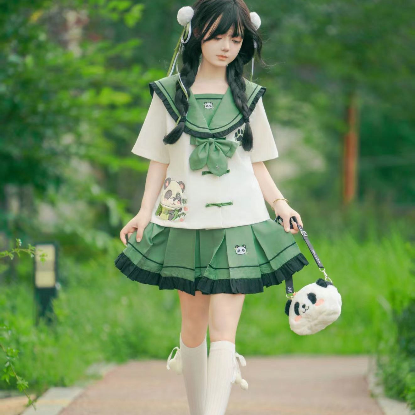 Новый оригинальный аутентичный [Zhi Zhu] милый костюм с короткими рукавами в китайском стиле с тематикой панды