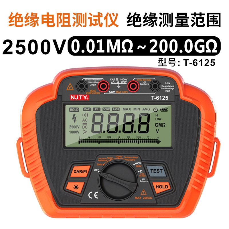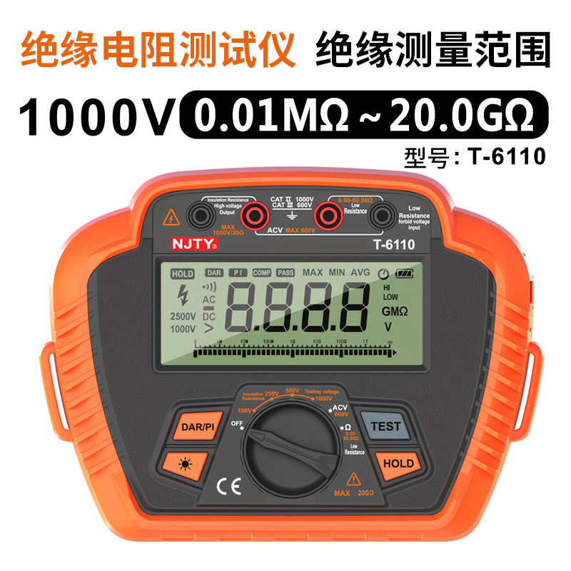 Тестер сопротивления изоляции NJTY для трансграничного экспорта, высокоточный высоковольтный цифровой мегаомметр, интеллектуальный измеритель сопротивления обнаружения