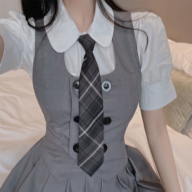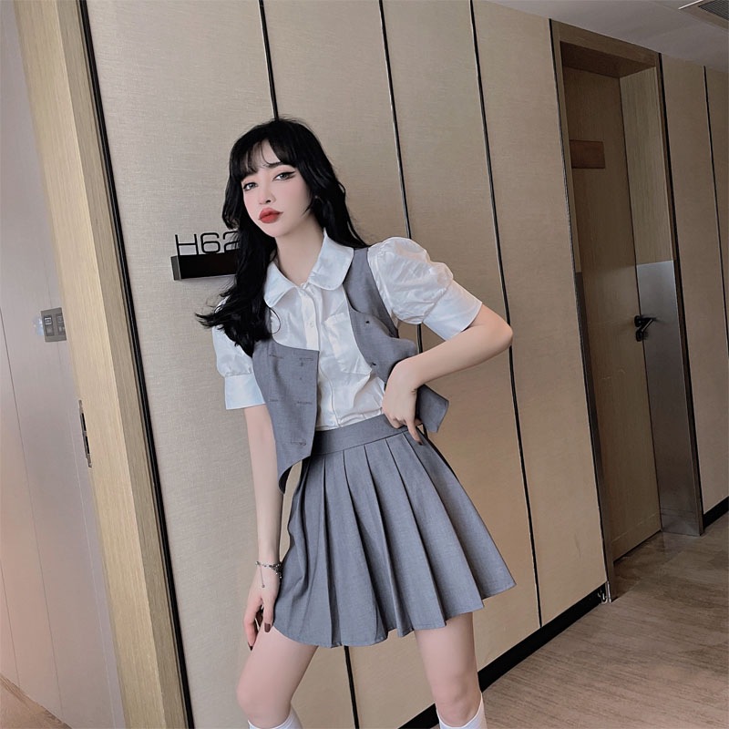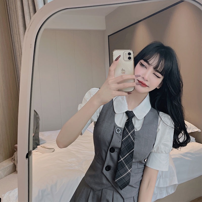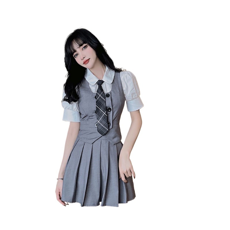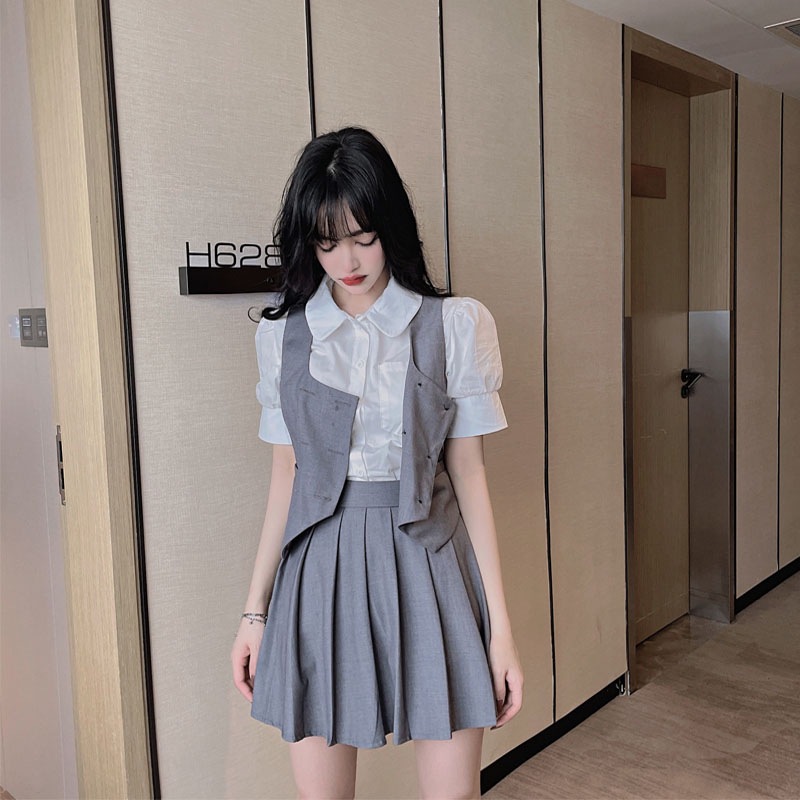 Женский костюм JK с плиссированной юбкой, летний стиль преппи, школьная форма в британском и корейском стиле, трехкомпонентный костюм с жилетом