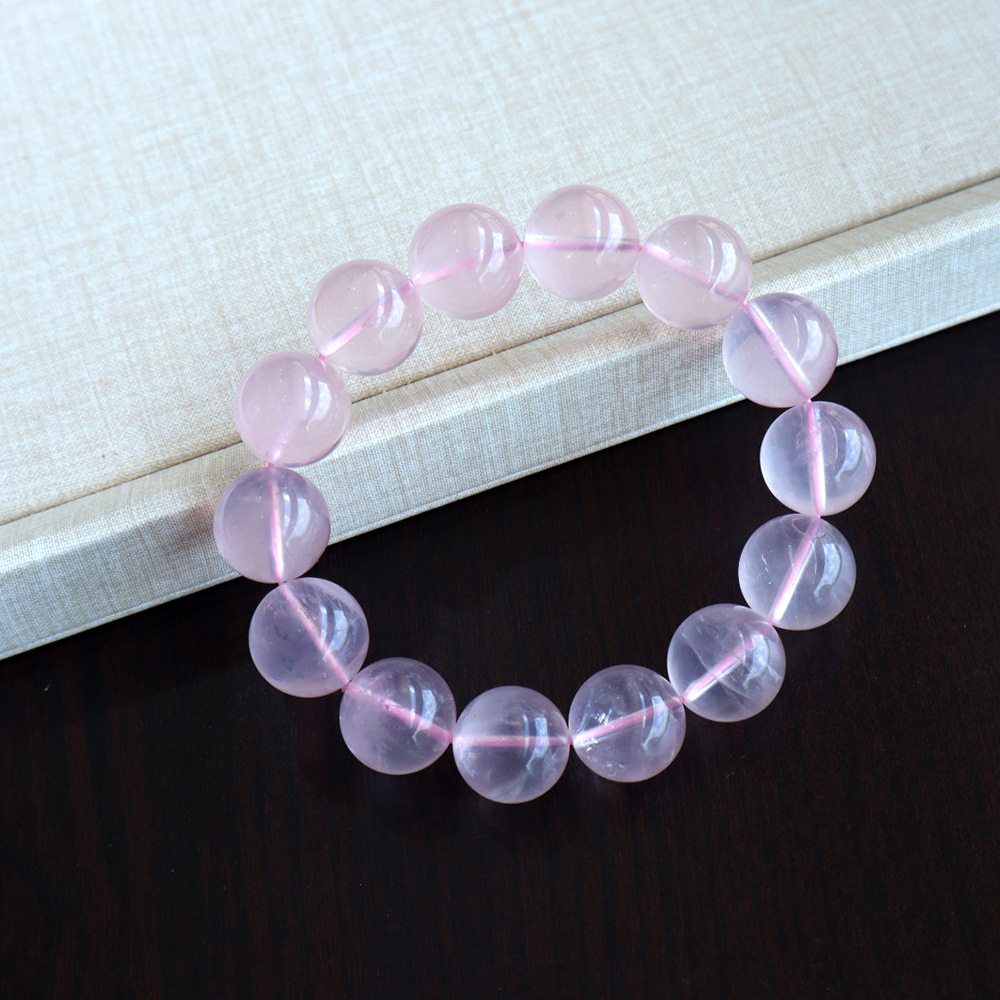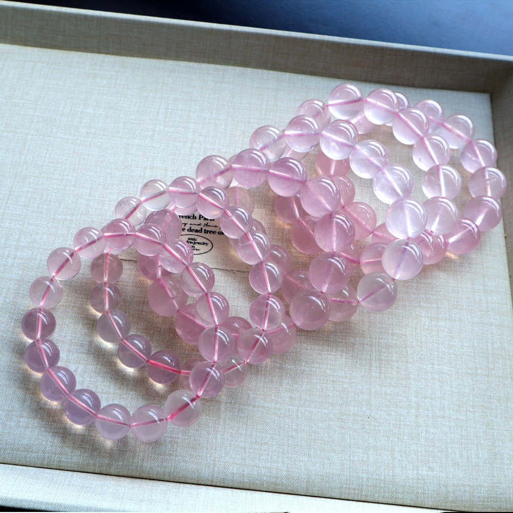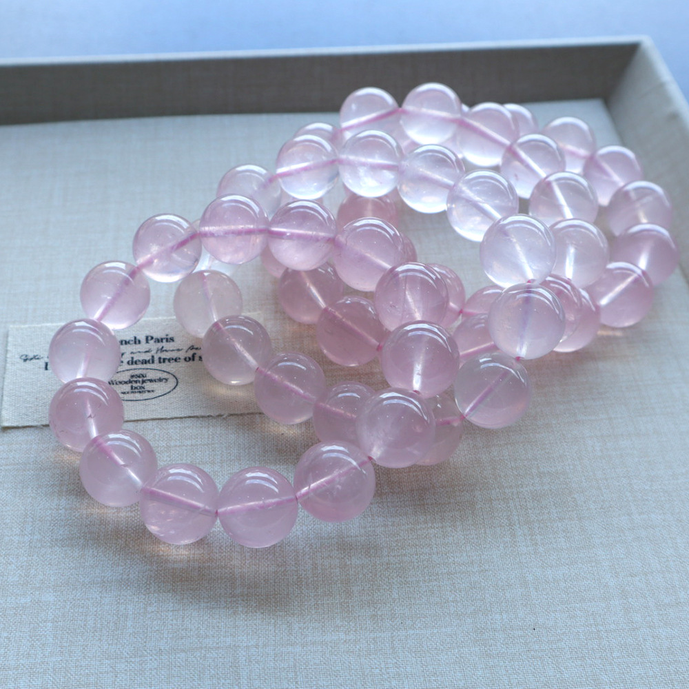 Браслет из натуральных розовых кристаллов, круглые бусины, кристально чистые, розово-флуоресцентные, светящиеся как звездный свет, круглые бусины, одинарный круговой браслет