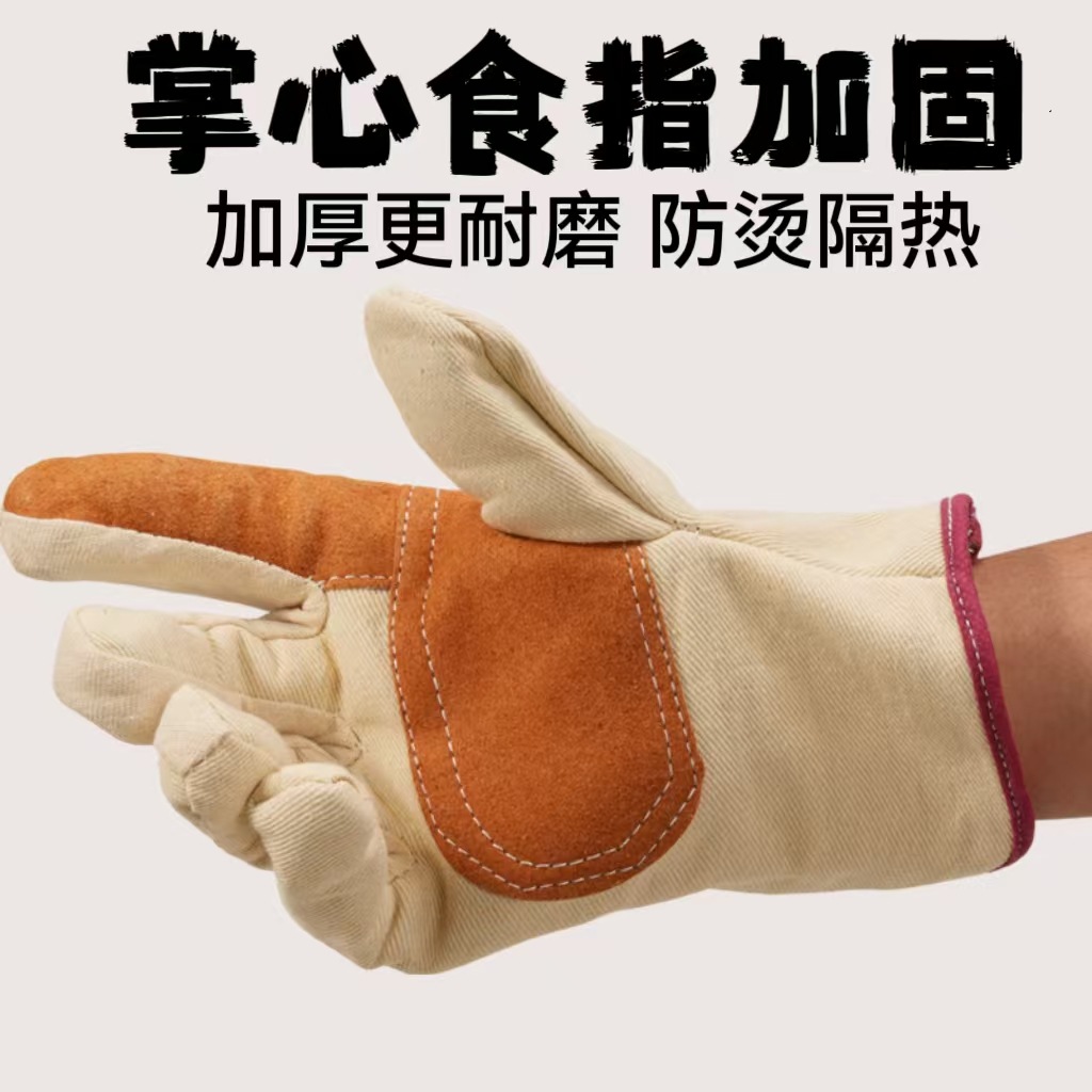Сварочные перчатки утолщенные износостойкие двухслойные 24-линейные парусиновые перчатки по охране труда, устойчивые к ожогам и порезам, устойчивые к высоким температурам сварочные кожаные перчатки