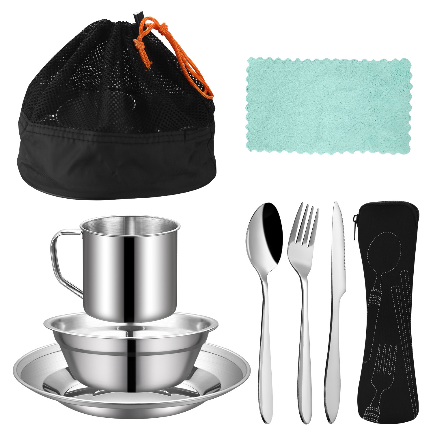 Набор посуды из нержавеющей стали для кемпинга на открытом воздухе, черный портативный набор для хранения