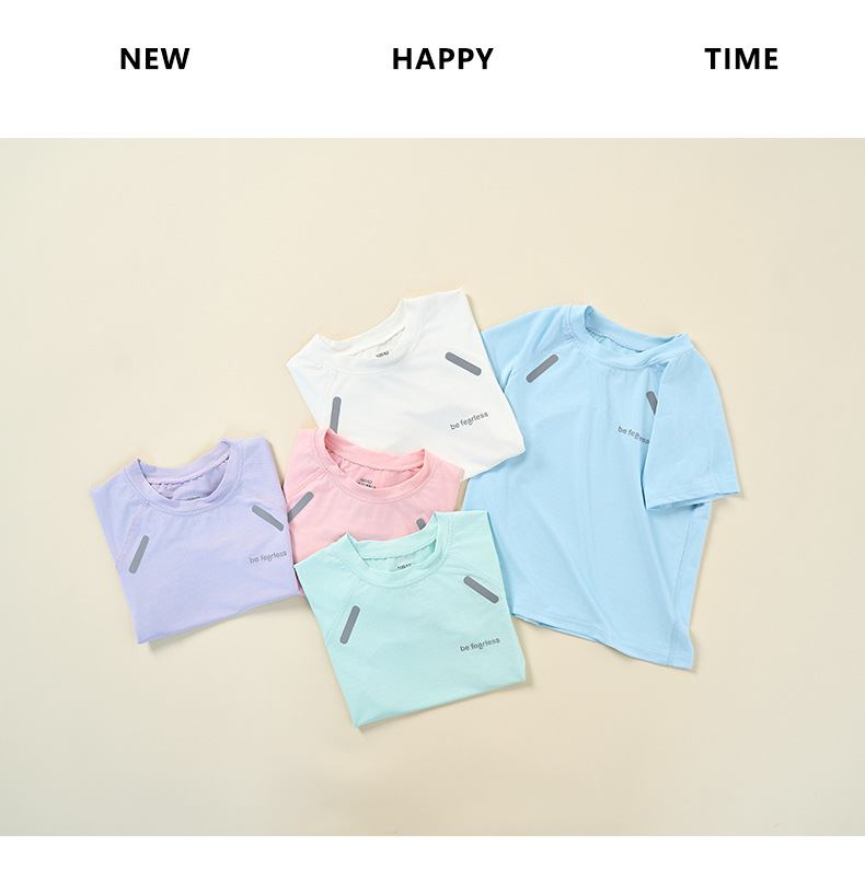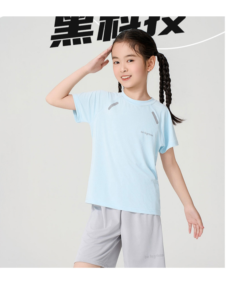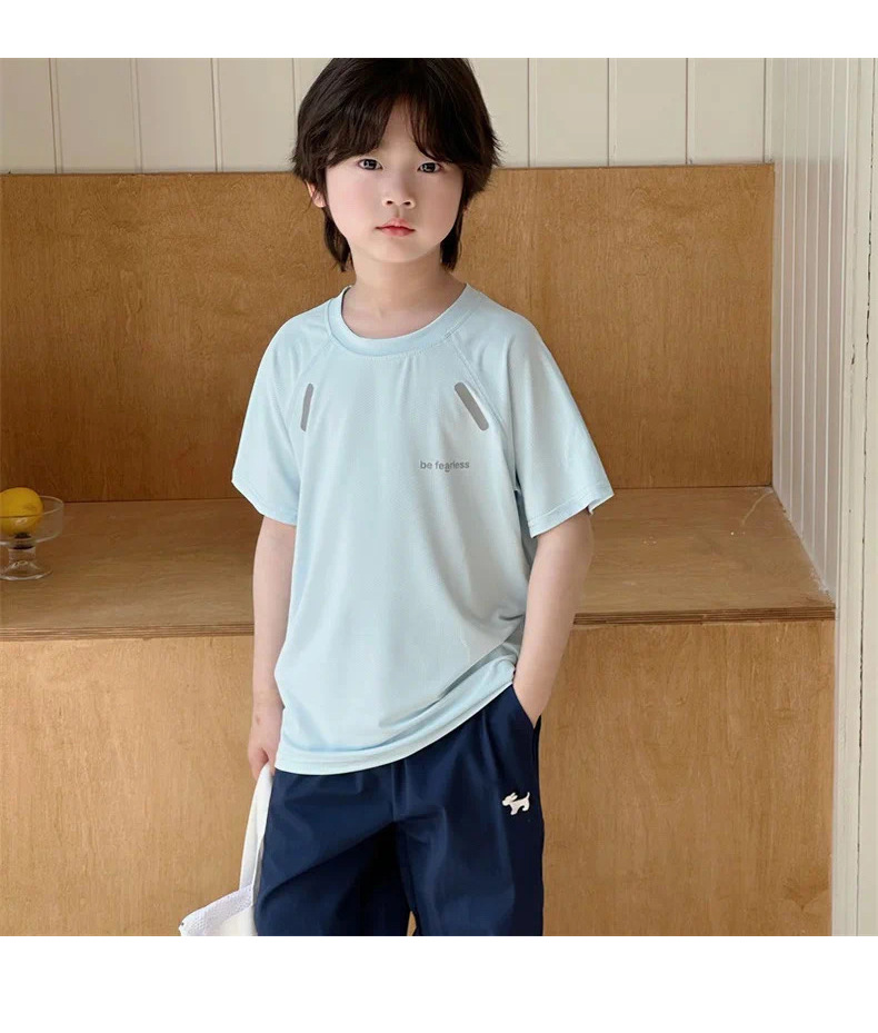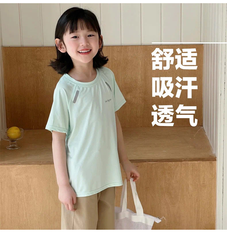 Быстросохнущая одежда для мальчиков, летние футболки из ледяного шелка с короткими рукавами для девочек среднего и старшего возраста, детская спортивная одежда, футболки для маленьких мальчиков.