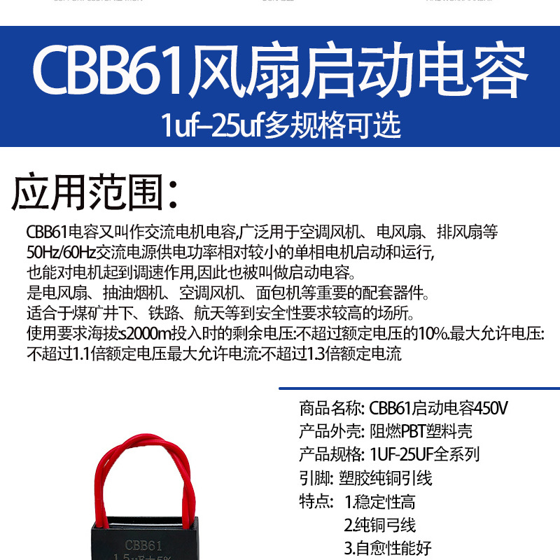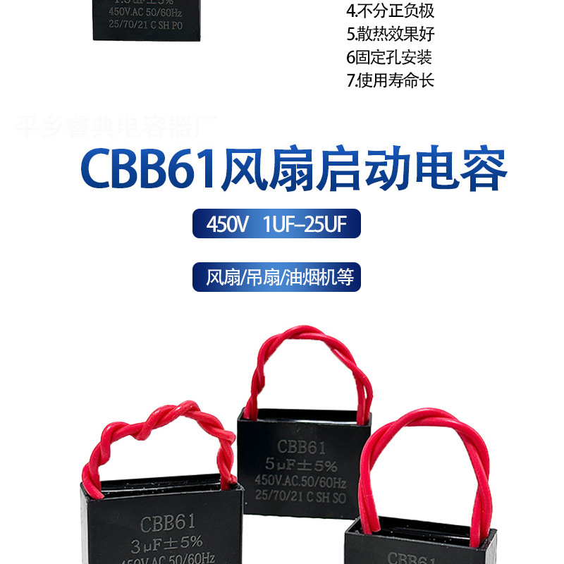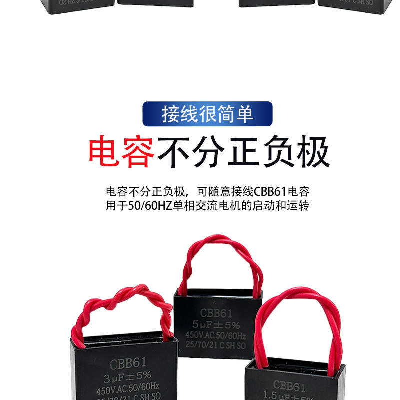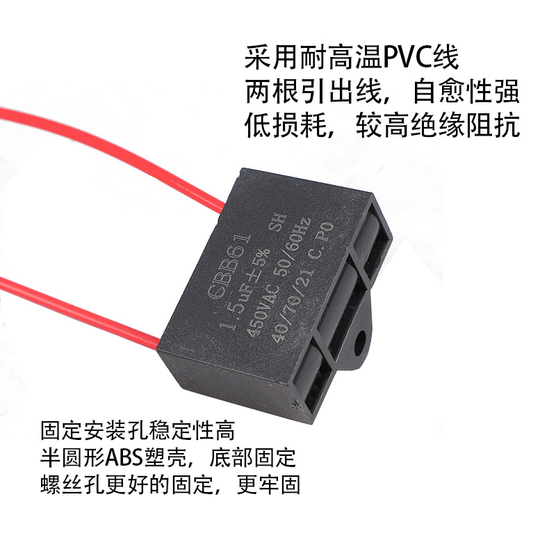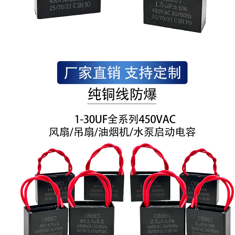 Конденсатор CBB61 1,5 мкФ1,8 мкФ4,5 мкФ450 В с линейным вентилятором, пусковой конденсатор, вытяжка, электрический вентилятор