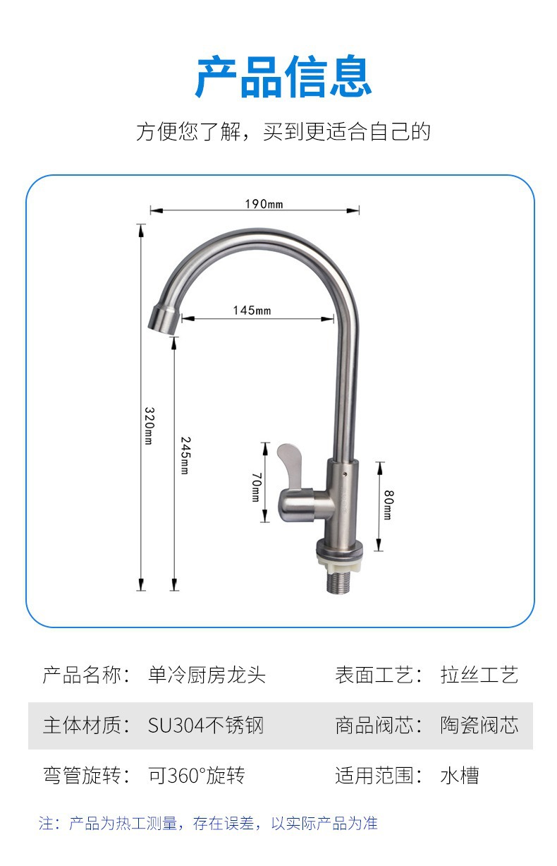 Производитель, смеситель из нержавеющей стали 304, одинарный смеситель для умывальника, раковина, настенный горизонтальный большой изогнутый смеситель для холодной воды