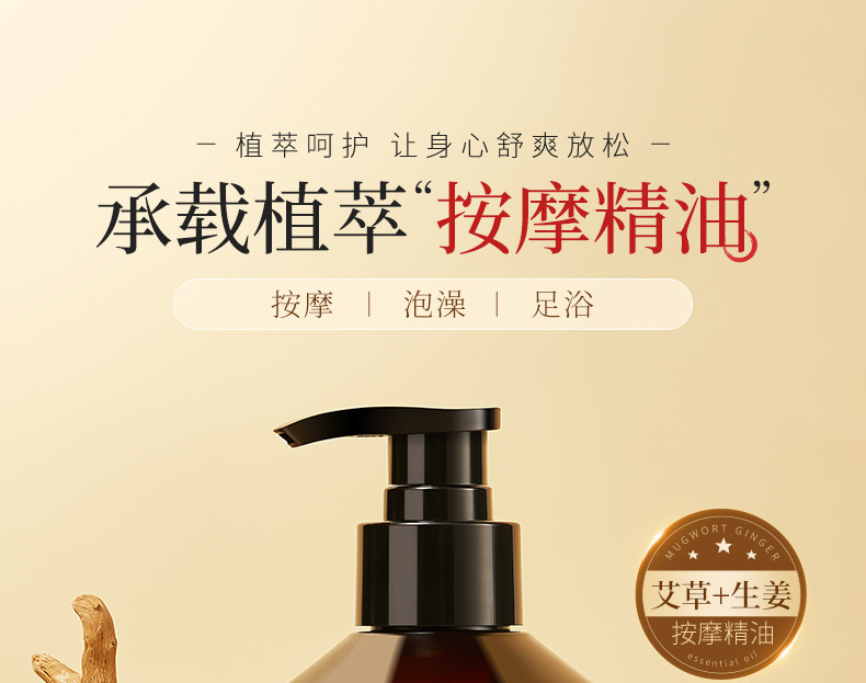 Эфирное масло для массажа тела с полынью и имбирем, растительное эфирное масло с имбирем и полынью Гуа Ша для массажа меридианов спины и эфирное масло для всего тела.