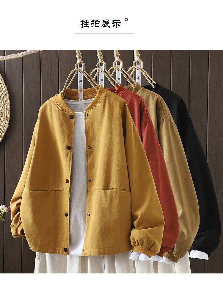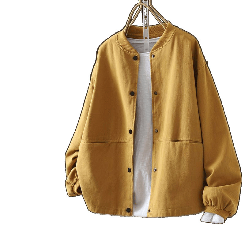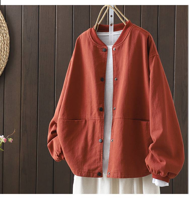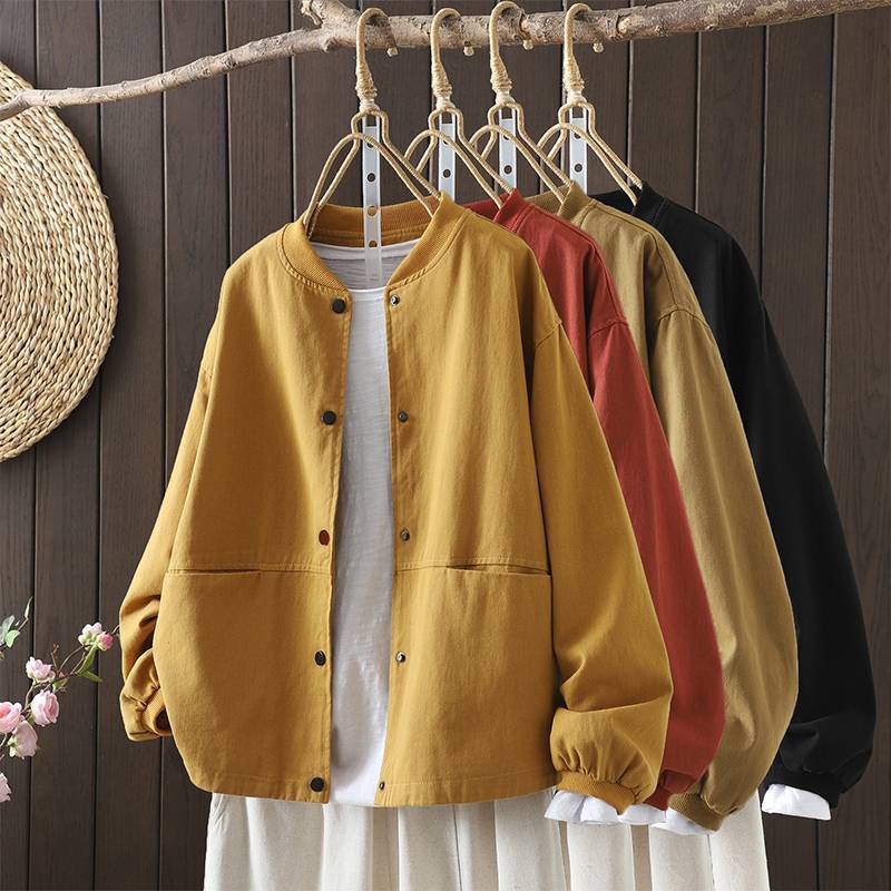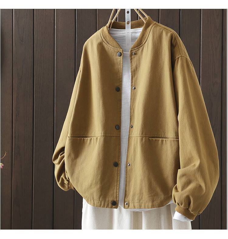 Винтажная бейсбольная куртка для женщин, свободная и облегающая, весенне-осенняя, больших размеров, хлопок, воротник-стойка, двойной карман, верхняя куртка.