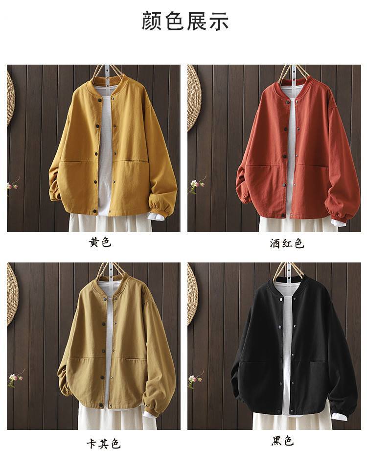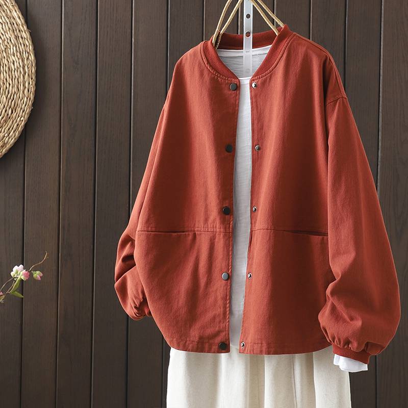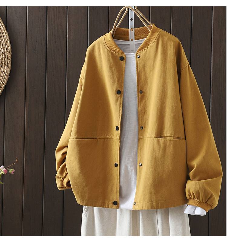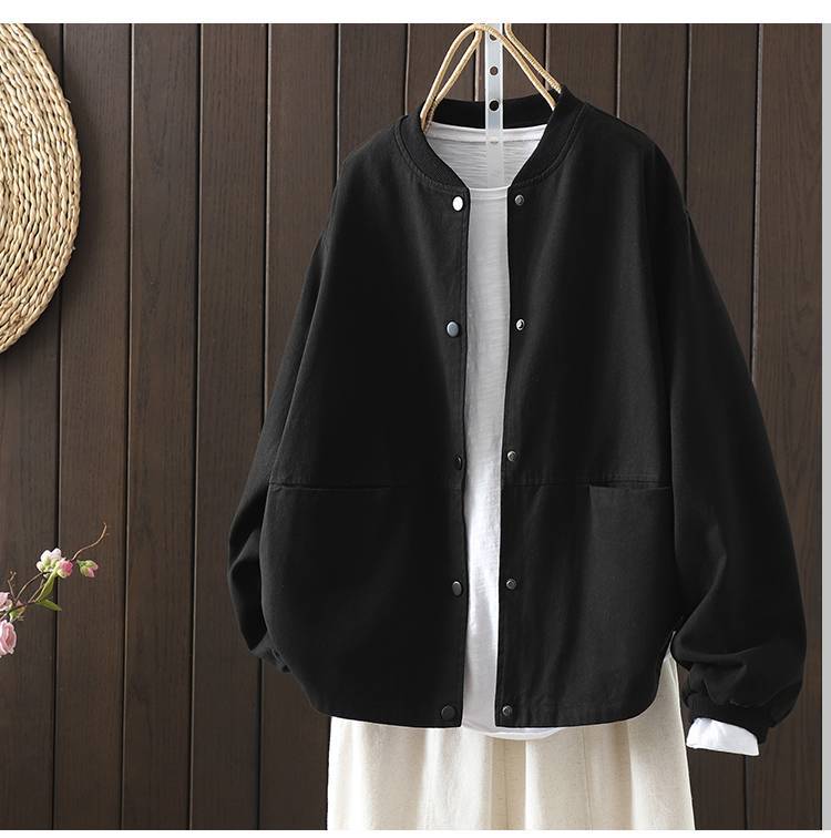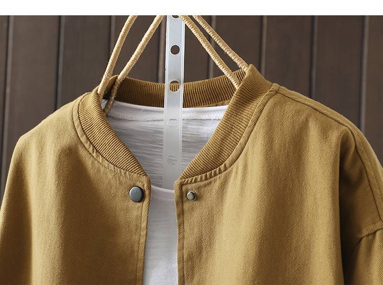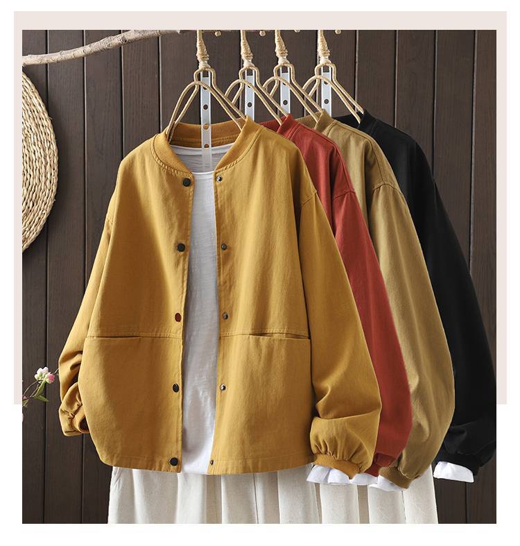 Винтажная бейсбольная куртка для женщин, свободная и облегающая, весенне-осенняя, больших размеров, хлопок, воротник-стойка, двойной карман, верхняя куртка.