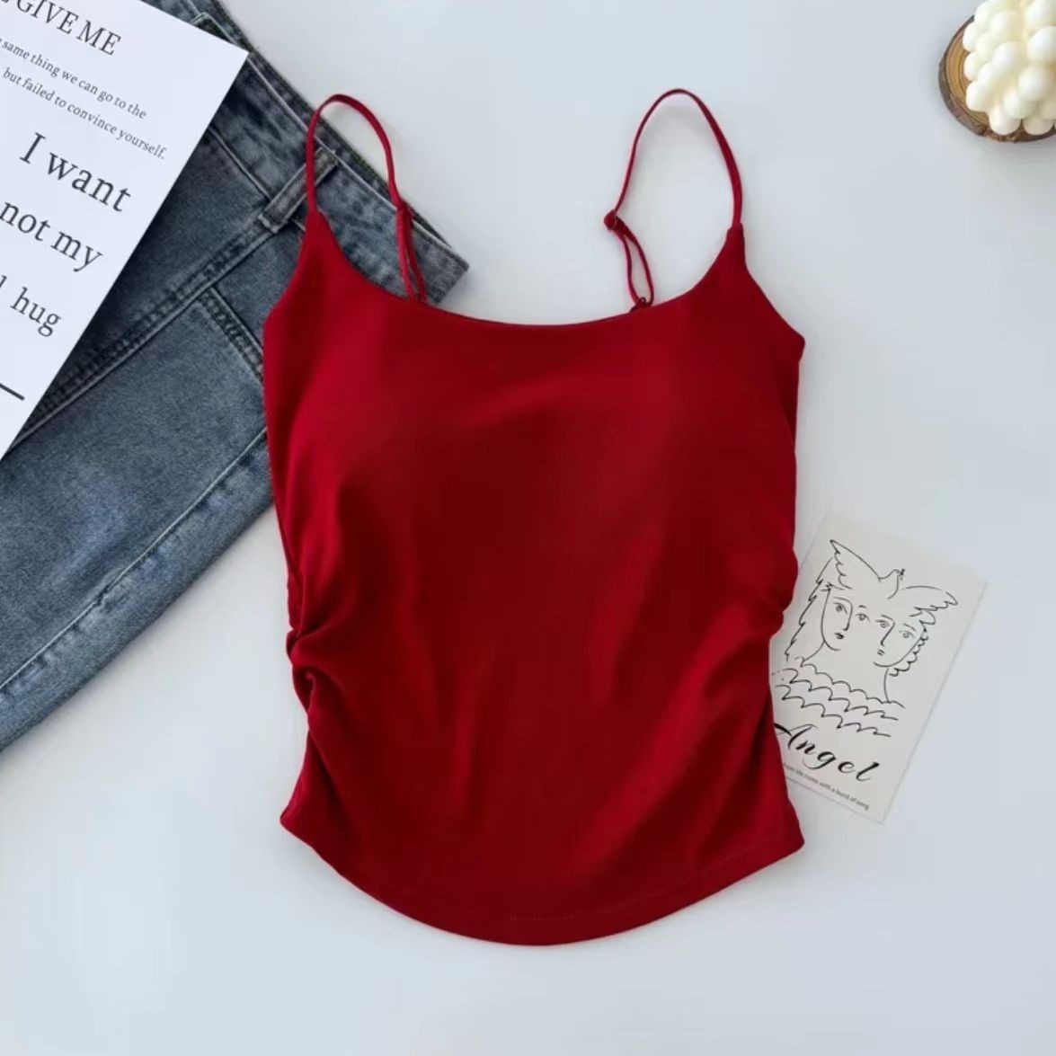 Pure Desire плиссированная женская майка с красивой спиной, облегающая верхняя одежда с фиксированной чашкой, топ с облегающей грудью, нижнее белье, женский топ