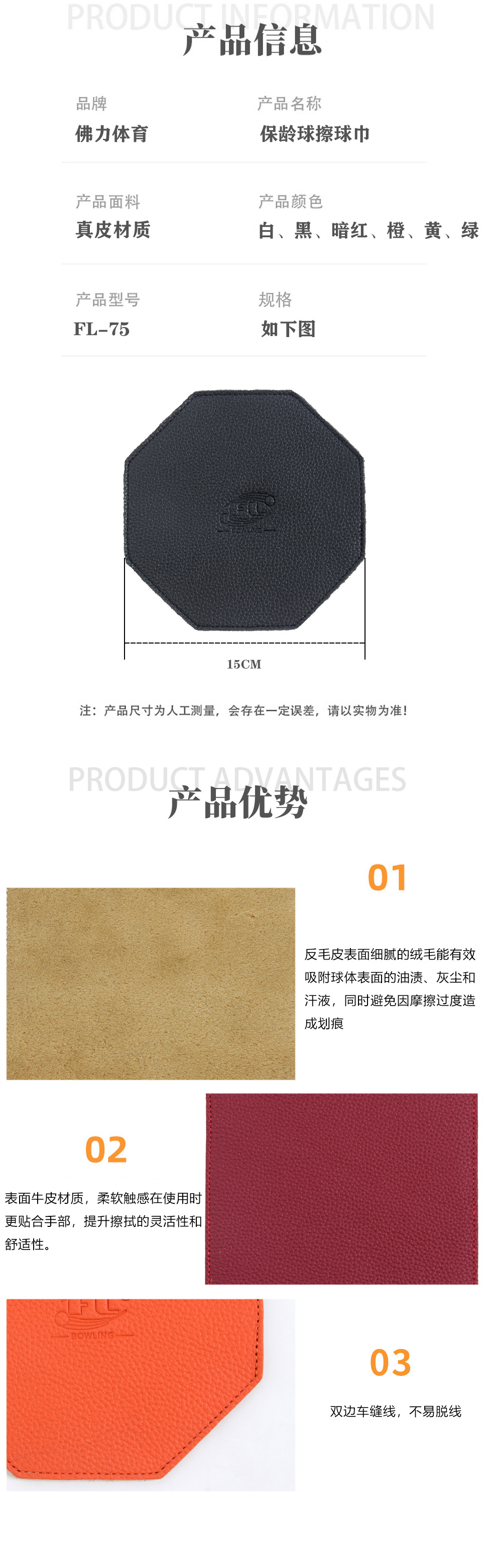 Ruijue Sports Factory Прямые продажи FL Брендовое полотенце для боулинга Натуральная кожа Полотенце для протирания мячей Боулинг Специальное восьмиугольное полотенце для мячей