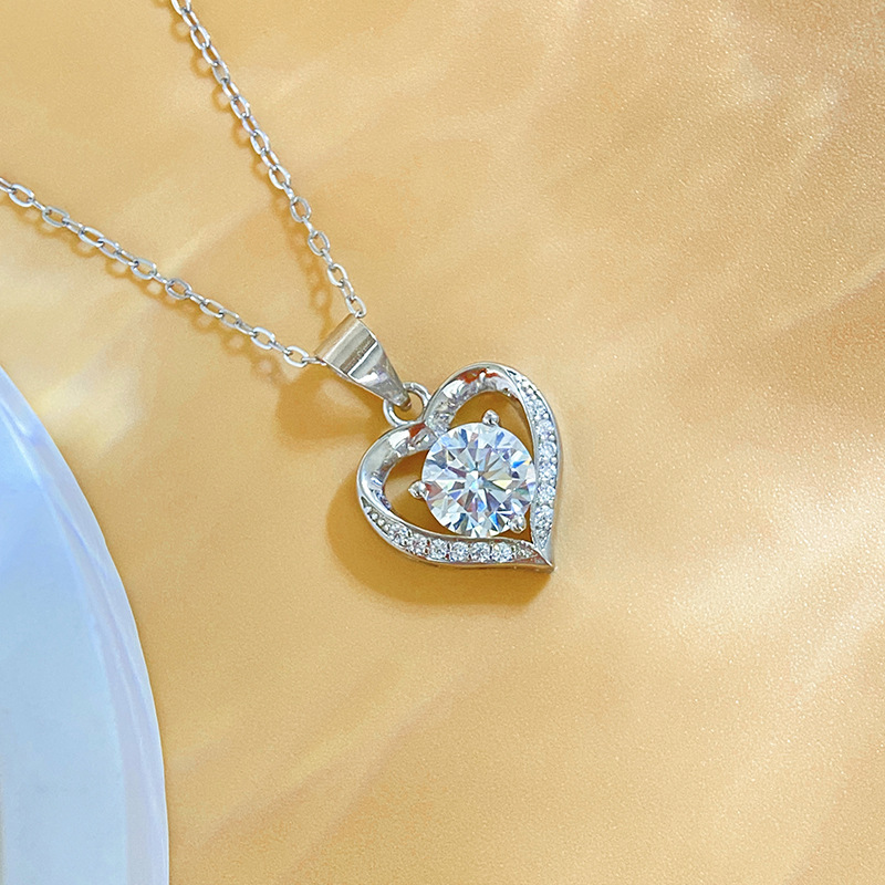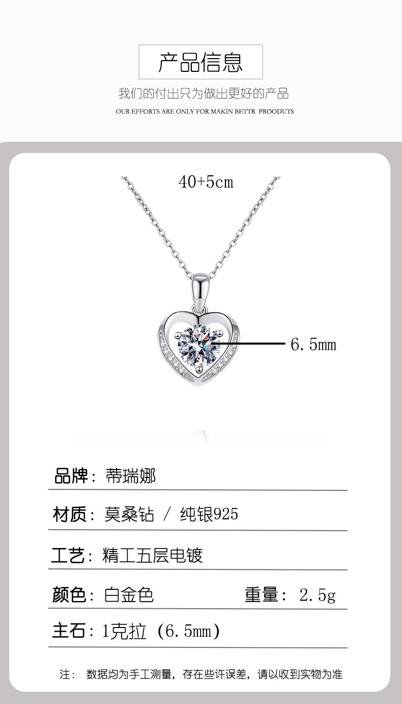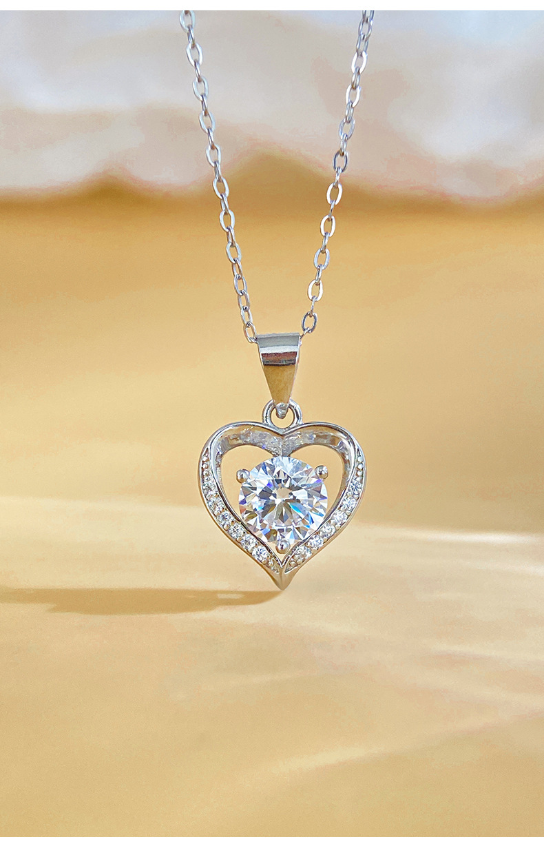 Корейская версия, ожерелье из стерлингового серебра 925 пробы, подвеска в форме сердца, женская цепочка на ключицу в форме сердца, инкрустированная бриллиантами, ожерелье с муассанитом
