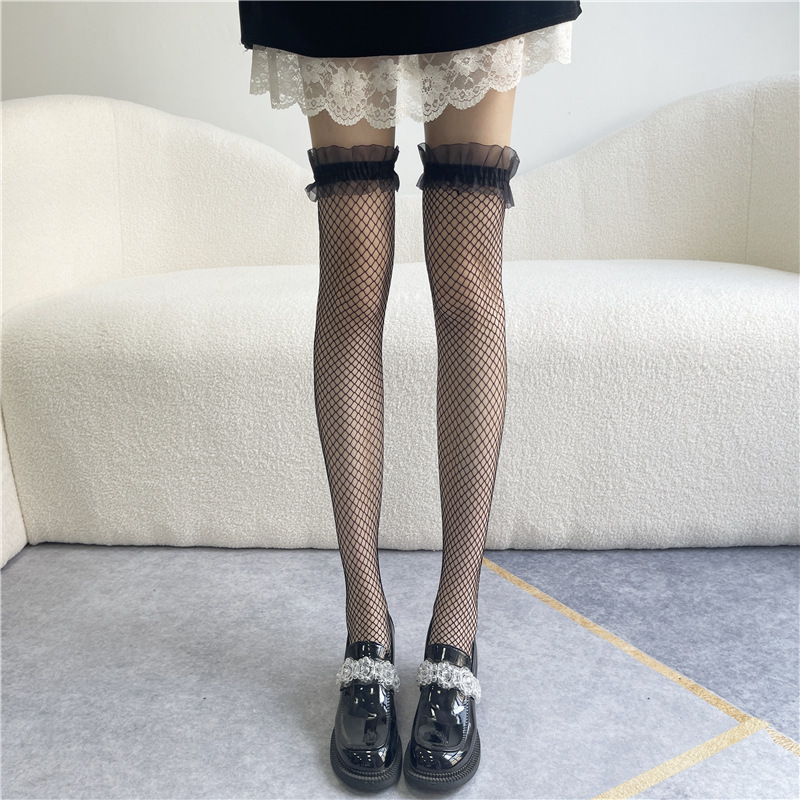 Черные чулки, сексуальные черные чулки, летние тонкие кружевные чулки-сетка выше колена, черные чулки средней длины, выше колена.