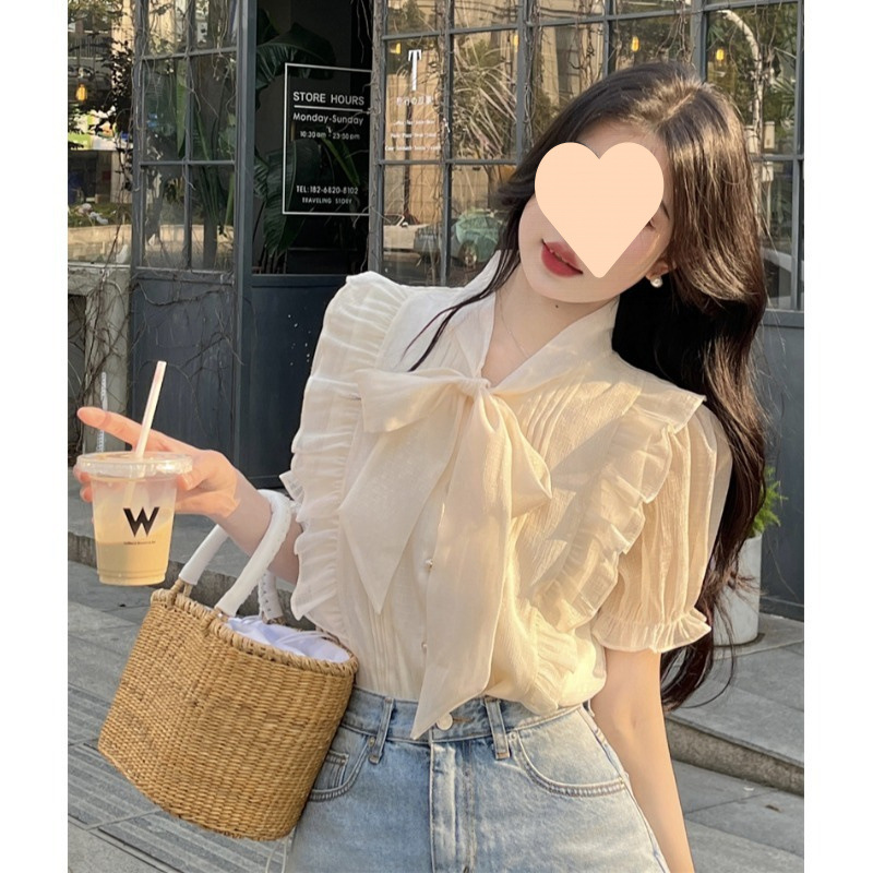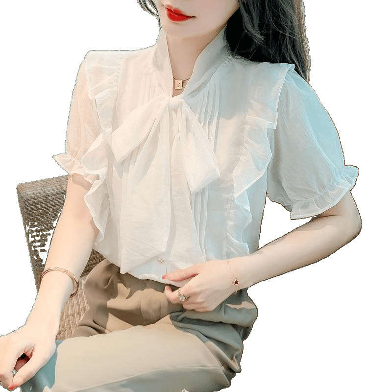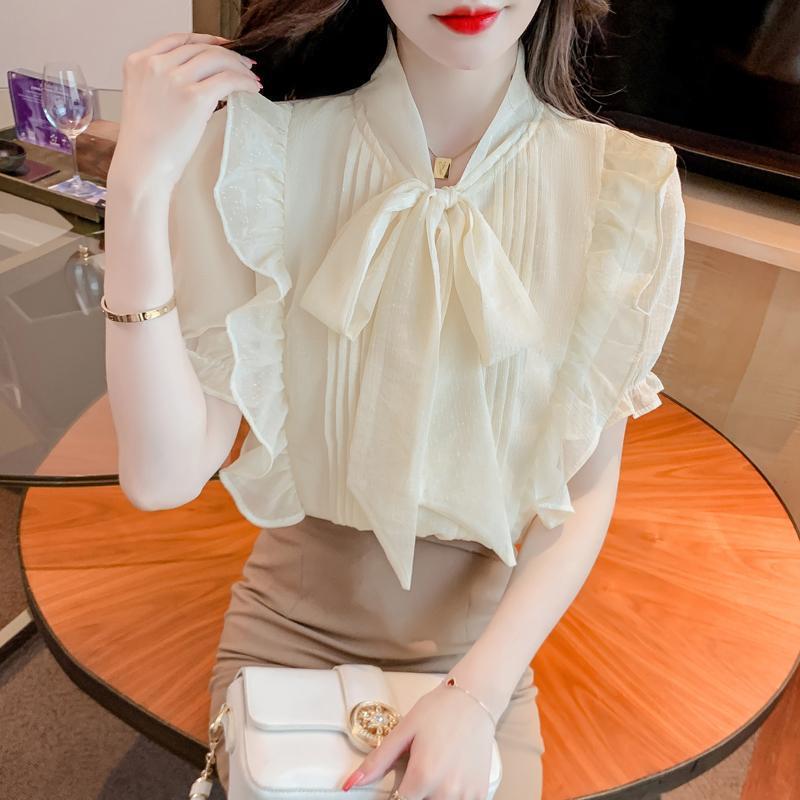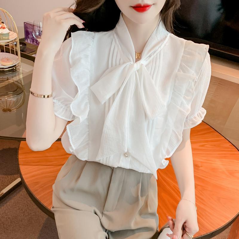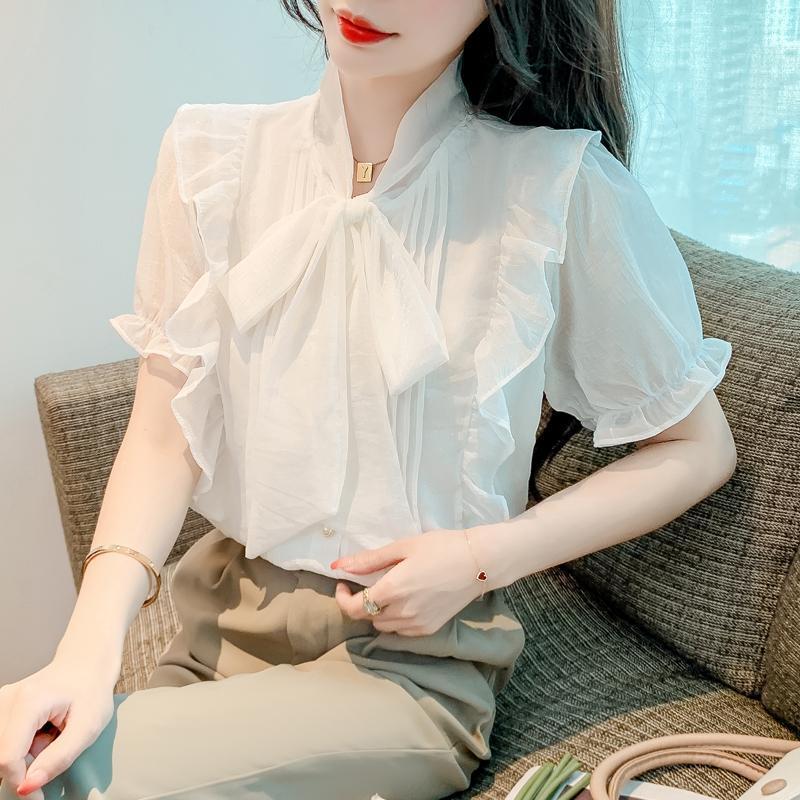 Элегантная свободная шифоновая рубашка с пышными рукавами и рюшами, женская дизайнерская нишевая французская рубашка в западном стиле